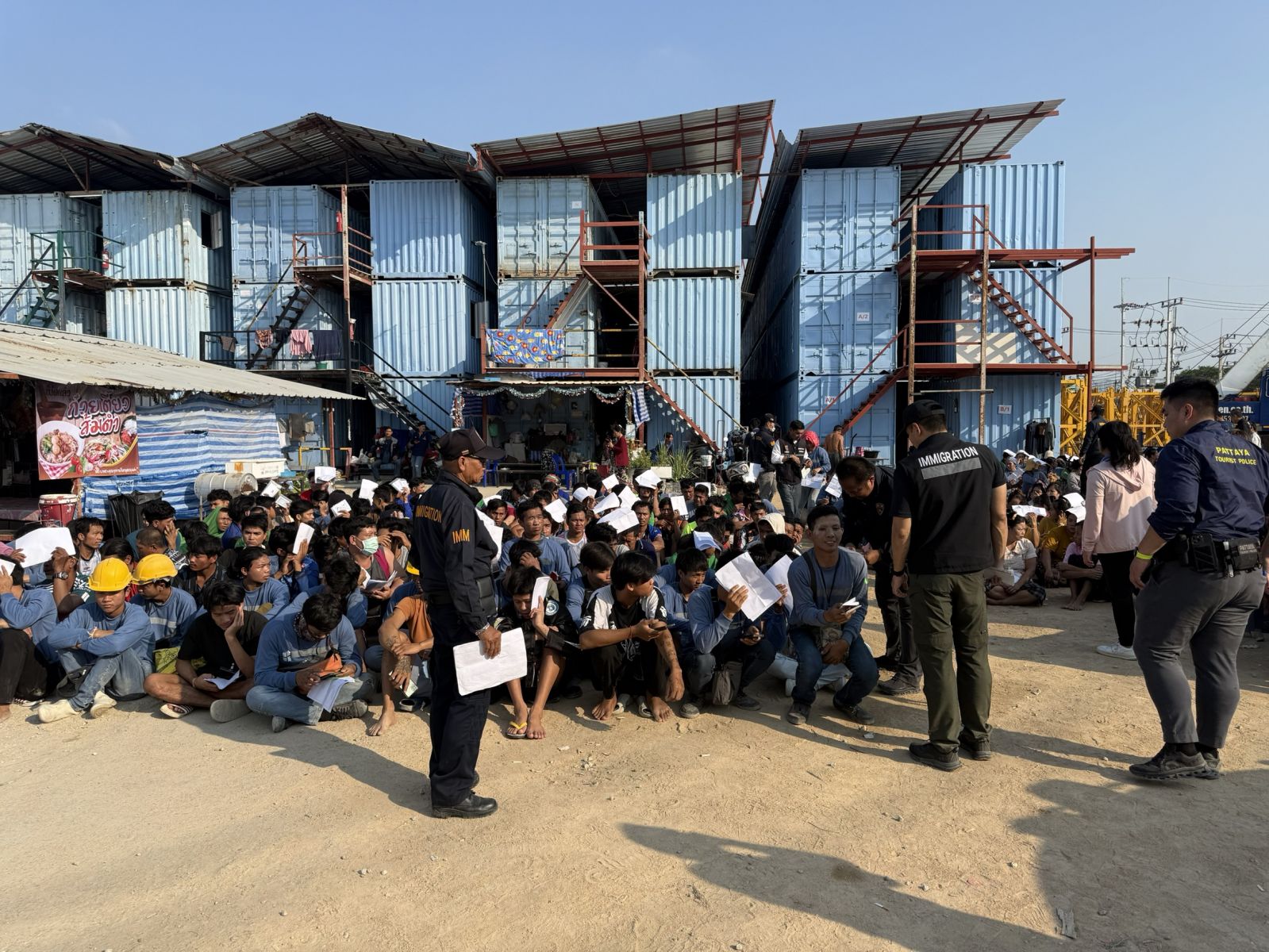 ระดมกำลังเจ้าหน้าที่กว่า 50 นาย เข้าปิดล้อมตรวจค้นแคมป์แรงงานต่างด้าวในพื้นที่ย่านเทพประสิทธิ์และจอมเทียน จำนวน 2 จุด เพื่อกวดขันและปราบปรามแรงงานต่างด้าวผิดกฎหมาย ตามนโยบายสำคัญของ พล.ต.อ.สำราญ นวลมา รองผู้บัญชาการตำรวจแห่งชาติ