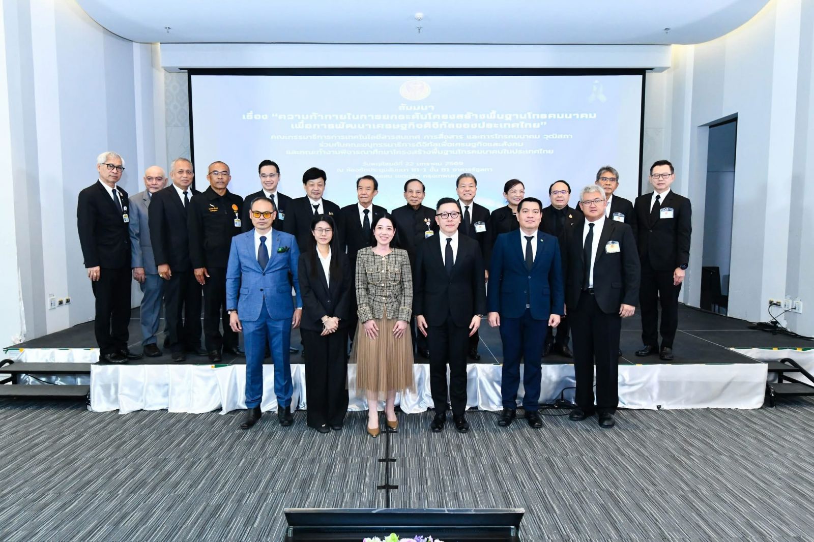 วันที่ 22 มกราคม 2569 เวลา 09.00 นาฬิกา ณ ห้องจัดประชุมสัมมนา B1-1 ชั้น B1 (สส.)คณะกรรมาธิการการเทคโนโลยีสารสนเทศ การสื่อสาร และการโทรคมนาคม วุฒิสภา ร่วมกับคณะอนุกรรมาธิการดิจิทัลเพื่อเศรษฐกิจและสังคม และคณะทำงานพิจารณาศึกษาโครงสร้างพื้นฐานโทรคมนาคมในประเทศไทย จัดสัมมนาเรื่อง “ความท้าทายในการยกระดับโครงสร้างพื้นฐานโทรคมนาคม เพื่อการพัฒนาเศรษฐกิจดิจิทัลของประเทศไทย” โดยมี นายบุญส่ง น้อยโสภณ รองประธานวุฒิสภา คนที่สอง เปิดการสัมมนา นายนิเวศ พันธ์เจริญวรกุล ประธานคณะกรรมาธิการ กล่าวรายงาน พร้อมด้วยสมาชิกวุฒิสภา คณะกรรมาธิการ หน่วยงานที่เกี่ยวข้อง เข้าร่วม