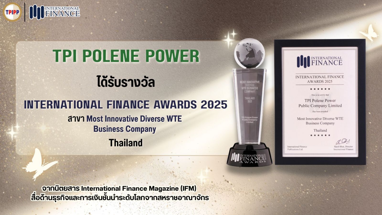บริษัท ทีพีไอ โพลีน เพาเวอร์ จำกัด (มหาชน) หรือ TPIPP สร้างชื่อเสียงให้ประเทศไทยบนเวทีระดับนานาชาติ หลังได้รับรางวัล International Finance Awards 2025 สาขา “Most Innovative Diverse WTE Business Company Thailand” จาก International Finance Magazine (IFM) สื่อด้านธุรกิจและการเงินชั้นนำจากสหราชอาณาจักร โดยในโอกาสนี้ นายภัคพล เลี่ยวไพรัตน์ รองกรรมการผู้จัดการใหญ่ เป็นผู้แทนเข้ารับรางวัล