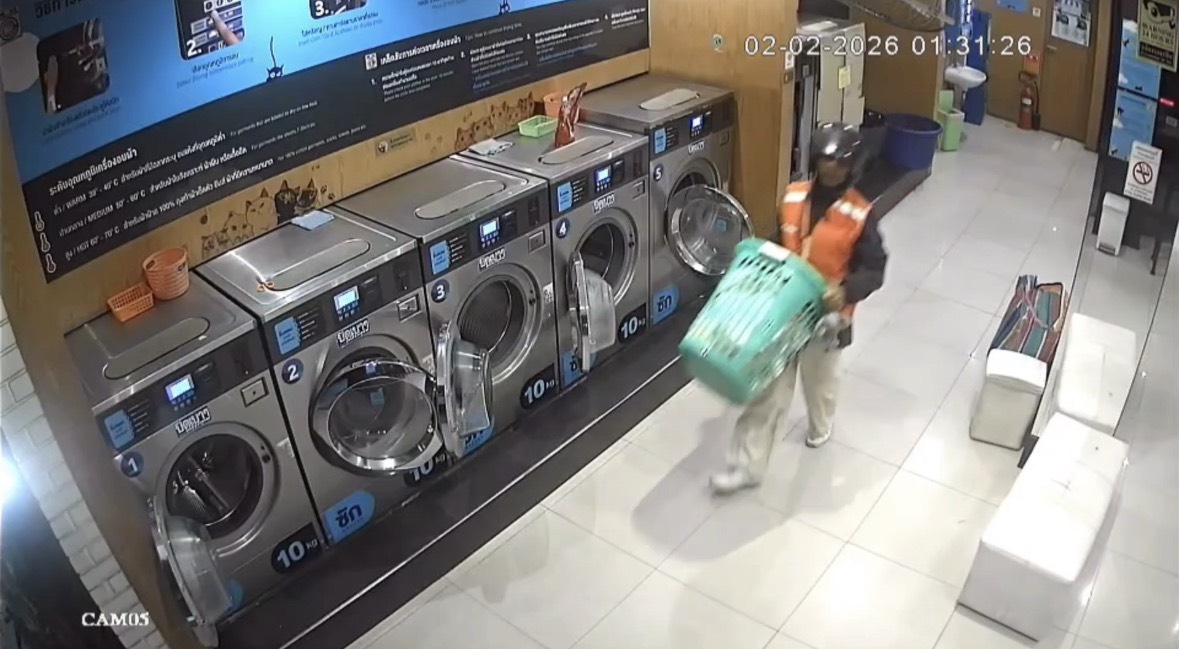 เหตุการณ์ดังกล่าวเกิดขึ้นเมื่อเวลา 01.31 น. วันที่ 2 กุมภาพันธ์ 2569 โดยผู้เสียหายมีหลักฐานเป็นภาพจากกล้องวงจรปิด ซึ่งสามารถบันทึกพฤติกรรมของคนร้ายไว้ได้อย่างชัดเจน จากการตรวจสอบภาพ พบคนร้ายเป็นชายไทย สวมเสื้อวินจักรยานยนต์สีส้ม ด้านหลังสกรีนข้อความ “โทนี่ผับ พัทยาใต้” สวมกางเกงขายาว รองเท้าผ้าใบ สะพายกระเป๋าสีน้ำตาล และสวมหมวกกันน็อกเต็มใบสีดำคาดขาว ทำทีถือตะกร้าผ้าเดินเข้ามาภายในร้านเหมือนลูกค้าทั่วไป ก่อนจะมุ่งตรงไปยังเครื่องอบผ้าแห้งที่ผู้เสียหายใช้งานอยู่