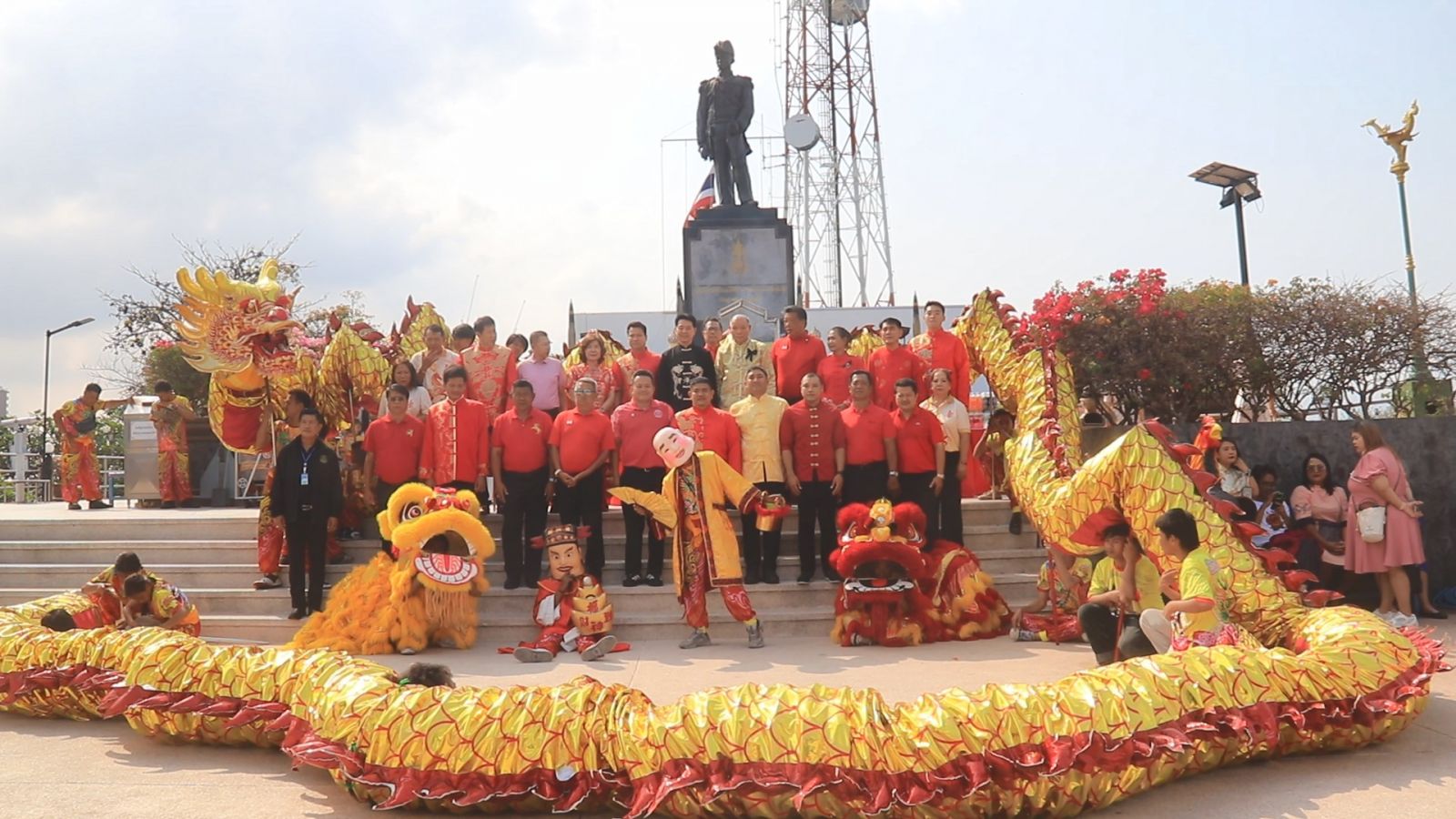 จุดแรก เป็นพิธีสักการะ พระบรมราชานุสาวรีย์สมเด็จพระเจ้าตากสินมหาราช ณ ลานด้านหน้าศาลาว่าการ เมืองพัทยา เนื่องในวันตรุษจีนซึ่งตรงกับวันขึ้นปีใหม่ตามปฏิทินจีนของปีนี้ โดยมีการแสดง มังกรทองและสิงโต สร้างสีสันและเอาฤกษ์เอาชัย