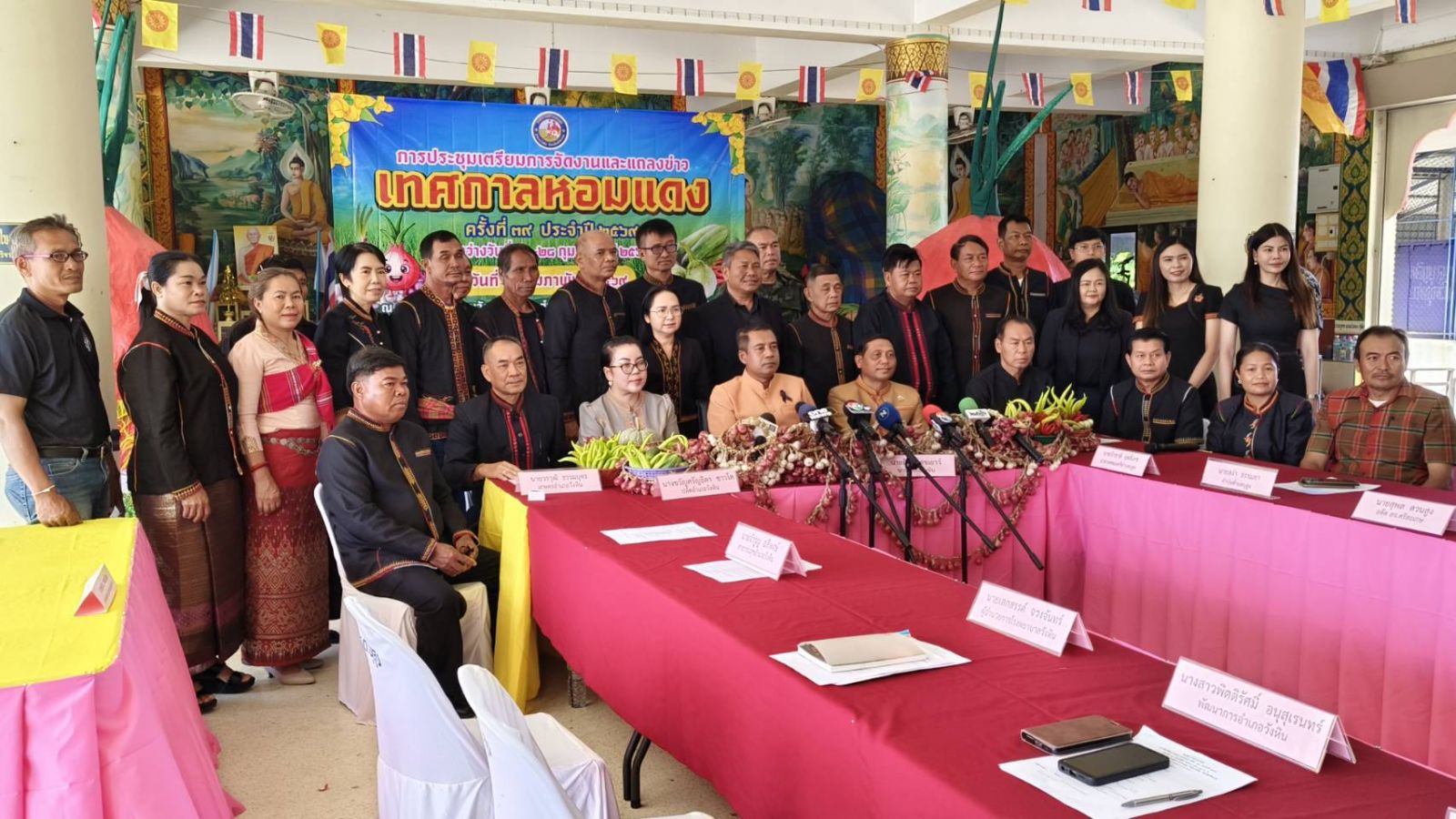 เมื่อวันที่ 18 ก.พ. 2569 ที่บริเวณวัดบ้านขุมคำ ต.บุสูง อ.วังหิน จ.ศรีสะเกษ นายลิขิต สุขเยาว์ นายอำเภอวังหิน เป็นประธานในพิธีเปิดการประชุมและแถลงข่าวเตรียมจัดงาน “เทศกาลหอมแดง ครั้งที่ 39 ประจำปี 2569 โดยมี นายรักชาติ ฤทธิ์เดช นายกเทศมนตรีตำบลบุสูง หัวหน้าส่วนราชการ ผู้บริหารสถานศึกษา กำนัน ผู้ใหญ่บ้าน เกษตรกรผู้ปลูกหอมแดงและชาวบ้านในพื้นที่ให้การต้อนรับและร่วมกิจกรรมด้วย