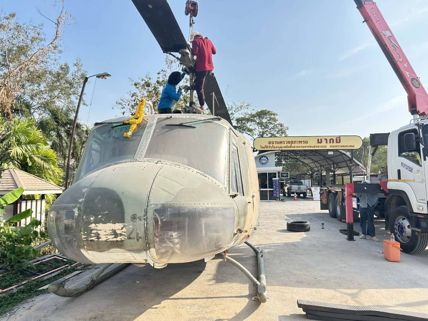 นายณัฐพล นิรมล หรือ “เสี่ยต้น” เจ้าของเต็นท์รถ “มากมี ออลคาร์ เซอร์วิส” ตั้งอยู่เลขที่ 365/5 หมู่ 9 ต.สมอแข อ.เมือง จ.พิษณุโลก ได้เปิดเผยกับผู้สื่อข่าวว่า ตลาดรถยนต์มือสองช่วงนี้ค่อนข้างเงียบ โดยส่วนใหญ่มีปัจจัยมาจากเงื่อนไขการจัดไฟแนนซ์ ที่จัดยากขึ้น ในขณะที่ลูกค้าก็มีตัวเลือกมากขึ้น และตนเองมีเพื่อน ที่ได้ประมูลเฮลิคอปเตอร์ ลำนี้มาแล้วไม่มีสถานที่จัดเก็บ จึงนำมาฝากขาย ซึ่งตนเองก็มองว่า เป็นการสร้างสีสันให้กับเต็นท์รถด้วย จึงตกลงให้นำมาจอดขายที่เต็นท์ โดยตั้งราคาขายไว้ที่ 2.5 ล้านบาท บริการส่งฟรี ทุกจังหวัดทั่วประเทศไทย ระหว่างนี้ ประชาชนท่านใด ที่มีบุตรหลาน จะพาบุตรหลานมาเที่ยวชม มาถ่ายรูป ตนเองก็ยินดี ไม่มีข้อห้ามแต่อย่างใด