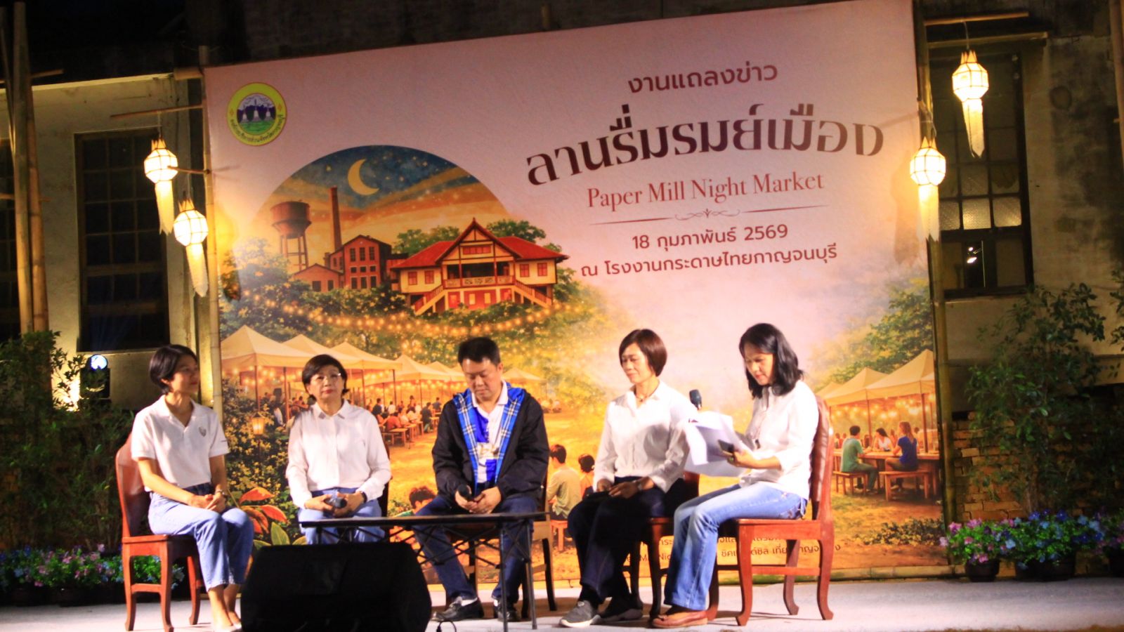 นางสาวณัฐรินทร์ พงษ์วิยภานุ ประธานหอการค้าจังหวัดกาญจนบุรี พูดถึงต้องชื่นชมโรงงานกระดาษไทยกาญจนบุรี แห่งนี้มาก โดยเมื่อปีที่ผ่านมา หอการค้าจังหวัดกาญจนบุรี ได้มีโอกาสเข้าร่วมประกวดโครงการอวดเมือง ซึ่งเป็นโครงการที่จัดโดย TCEB เพื่อเฟ้นหาเทศกาลหรือจุดเด่นของแต่ละจังหวัดมานำเสนอ เพื่อพัฒนาให้เป็นเครื่องมือทางเศรษฐกิจสร้างสรรค์ สร้างงาน สร้างรายได้ และทำให้น่าอยู่ น่าเที่ยว น่าลงทุน การจัดกิจกรรมดนตรี ลานรื่นรมย์เมือง จะทำให้เกิดการเดินทาง เกิดการจับจ่ายใช้สอย สร้าเศรษฐกิจชุมชนได้อย่างแน่นอน
