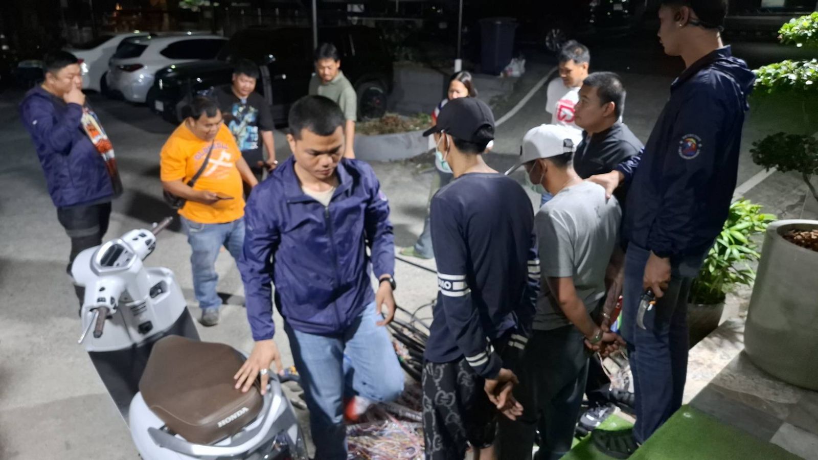 ต่อมาเมื่อช่วงเย็นวันนี้ (19 ก.พ. 69) เจ้าหน้าที่ชุดสืบสวน สามารถติดตามจับกุม นายกฤษณ์ภัสร์ ชยวัศโภคิม อายุ 31ปี อยู่บ้านเลขที่ 11/798 ม.1 ต.ระแหง อ.ลาดหลุมแก้ว จ.ปทุมธานี และ นายตรีวิทย์ ศรีมณฑา อายุ 24 ปี อยู่บ้านเลขที่ 1183/1 ซ.จรัญสนิทวงศ์ 79 แขวงบางพลัด เขตบางพลัด กรุงเทพมหานคร พร้อมของกลาง โดยจับกุมได้บริเวณที่ว่างเปล่า ริมถนนสาธารณะ ด.บางรักใหญ่ อ.บางบัวทอง จ.นนทบุรี จึงนำตัวมาสอบสวนขยายผลและตามยึดของกลางเป็นสายสื่อสารที่มีการปลอกลอกออกจากสายพลาสติกสีดำ อุปกรณ์ในการตัดสาย มีดปลอกสายไฟ และรถ จยย.ฮอนด้า สีขาว คันที่ใช้ก่อเหตุ