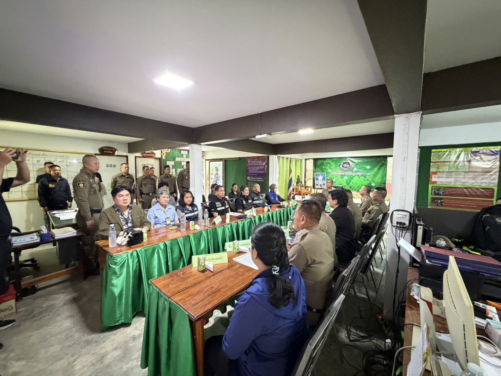 โดยมี พ.ต.อ.สันทัด ลยางกูร รอง ผบก.ภ.จว.กาญจนบุรี ผู้แทน กอ.รมน.กาญจนบุรี เจ้าหน้าที่ปกครอง เจ้าหน้าที่พัฒนาสังคมและความมั่นคงของมนุษย์จังหวัดกาญจนบุรี แรงงานจังหวัดกาญจนบุรี สวัสดิการและคุ้มครองแรงงานจังหวัดกาญจนบุรี จัดหางานจังหวัด ผู้แทน อบจ.กาญจนบุรี ตม.จว.กาญจนบุรี สาธารณสุขจังหวัดกาญจนบุรี เจ้าหน้าที่ ตชด.13 รวมถึงเจ้าหน้าที่มูลนิธิวันสกาย หัวหน้าสถานีตำรวจในสังกัด และข้าราชการตำรวจในสังกัด ภ.จว.กาญจนบุรี เข้าร่วม