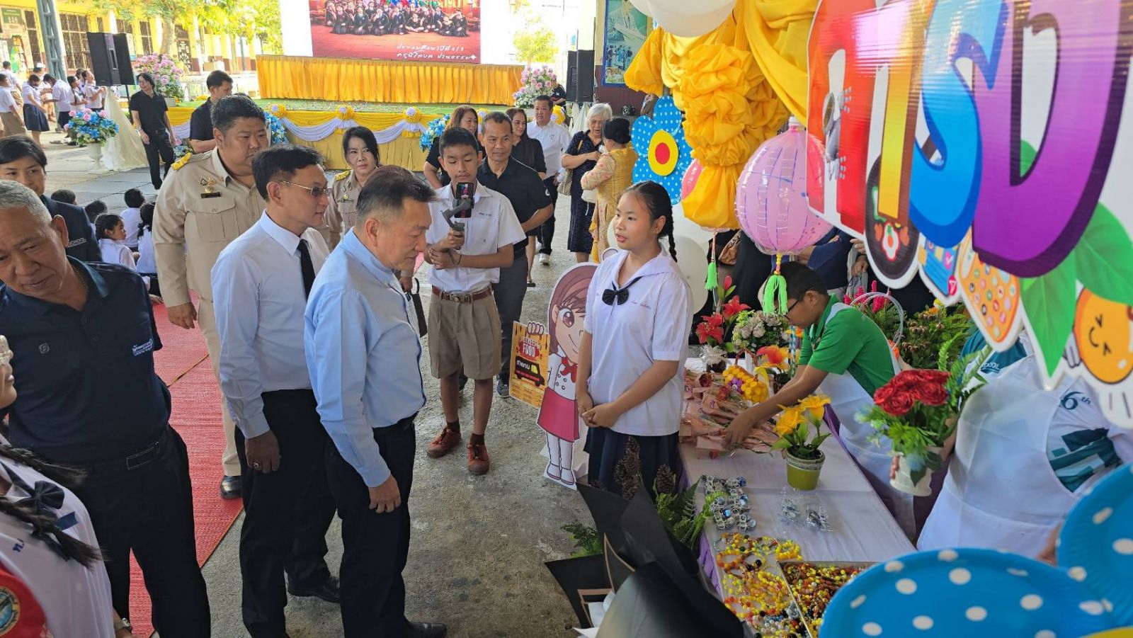 ผู้สื่อข่าวรายงานเพิ่มเติมว่าสำหรับบรรยากาศในวันนี้มีอยู่ด้วยกัน 3 ไฮไลท์ที่สร้างความตื่นเต้นและรอยยิ้มเสียงหัวเราะอย่างมากมายก็คือช่วงพิธีเปิดที่นำเทคโนโลยี AI มา สร้างคลิปวีดีโอ ต่างๆของคณะผู้บริหารฯ ตลอดจนสมาชิกสภาเทศบาลเมืองกาญจนบุรี ที่มึงทำเส้นทั้งลำ ทั้งขี่ม้า ปล่อยเอฟเฟคต่างๆเรียกเสียงหัวเราะและรอยยิ้ม อย่างแทบกั้นน้ำตาไว้ไม่อยู่ ส่วนซุ้มนิทรรศการด้านการอาชีพ ก็ได้มีการมอบส้มตำให้กับคณะประธานตลอดจนแขกผู้ร่วมงานได้ชิมกันอย่างเอร็ดอร่อย แบบแทบจะหยุดไม่อยู่กันเลยซะทีเดียว และอีกไฮไลท์ ขณะที่ประธานในพิธีได้เดินเยี่ยมบูธนิทรรศการต่างๆก็มาสะดุดตรงที่ จุดทำป๊อปคอร์นซึ่งมีตัวตึงของอนุบาล 1 คือน้องนะโมได้ทำการโชว์เต้นไมเคิลแจ็คสันให้ประธานและแขกผู้มีเกียรติ ได้ชมลีลาการเต้นอันสุดพริ้ว ของน้องนะโม ซึ่งก็สร้างเสียงหัวเราะได้อย่างต่อเนื่องกับจุดตรงนี้อีกด้วย ถือว่าเป็นกิจกรรมที่สร้างรอยยิ้มเสียงหัวเราะและทำให้ท้องอิ่มกันโดยถ้วนหน้าซะทีเดียว
