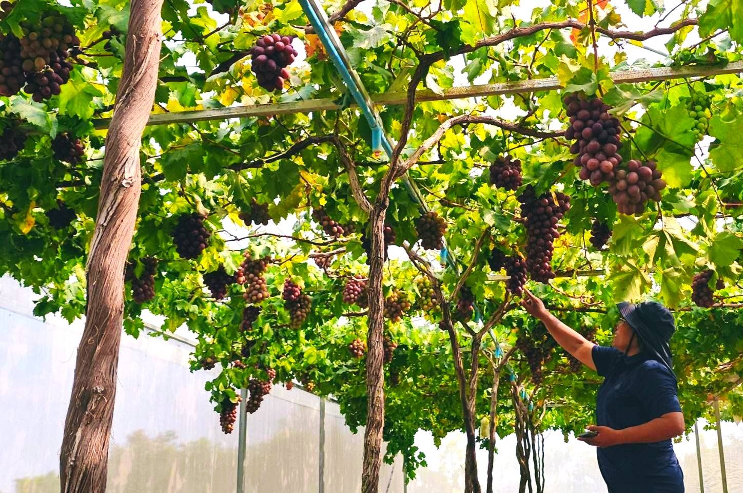 โดยเจ้าของสวนคือนาง วิภาวดี ศักดิ์สายพร อายุ 51 ปี อดีตสาวโรงงานจากกรุงเทพมหานคร ได้ลาออกจากงาน ผันตัวมาทำสวนองุ่นในพื้นที่ 1งาน ถือว่าประสบความสำเร็จ ได้ผลผลิตเป็นที่น่าพอใจ พร้อมกันนี้ยังได้ปลูกพืชผักกินได้ และจะทำการปลูกหน่อไม้ฝรั่ง ซึ่งอยู่ในการลงดินขยายพื้นที่ปลูก พร้อมทั้งมีความคิดที่จะถมดินเพิ่มขยายพันธ์องุ่นเพิ่มขึ้น