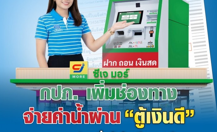 การประปาส่วนภูมิภาค (กปภ.) เพิ่มช่องทางชำระค่าน้ำประปาด้วยเงินสด ผ่าน “ตู้เงินดี” ให้บริการทุกวัน ที่หน้าร้านซีเจ มอร์ 30 สาขาที่ร่วมรายการ ในพื้นที่กรุงเทพมหานคร ปทุมธานี และชลบุรี อำนวยความสะดวกให้ลูกค้า จ่ายง่าย ฟรีค่าธรรมเนียมถึง 31 มี.ค. 2569
