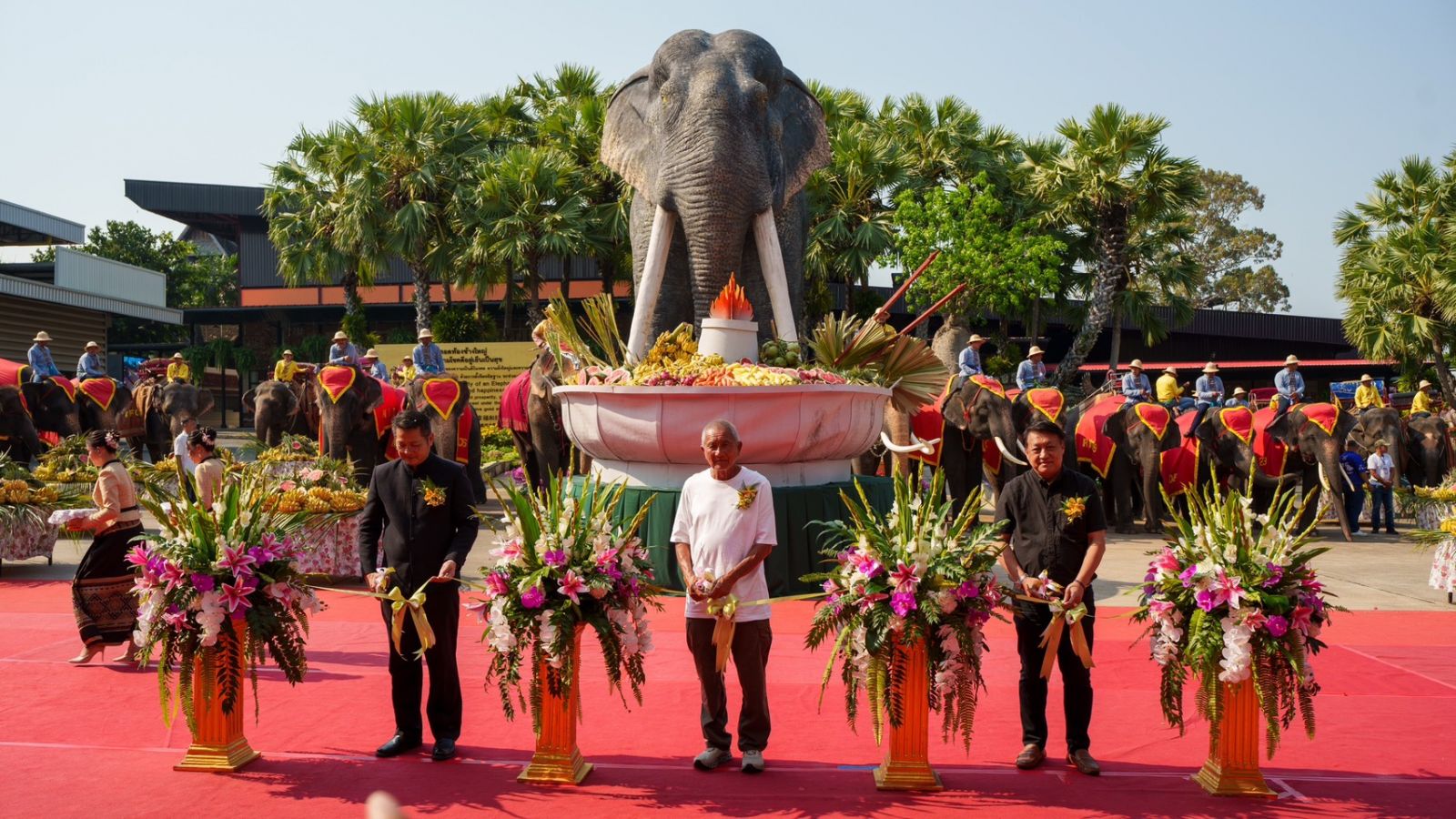 ส่วนไฮไลท์สำคัญของงาน คือ การตัดริบบิ้นเปิดงานให้น้องช้างทานบุฟเฟ่ต์ “หมาล่าหม้อไฟผลไม้ยักษ์” ขนาดกว้าง 4 เมตร สูง 3.5 เมตร ซึ่งอัดแน่นด้วยผลไม้นานาชนิดสำหรับเลี้ยงช้าง สะท้อนถึงความอุดมสมบูรณ์และการดูแลเอาใจใส่ช้างอย่างดีของสวนนงนุชพัทยา