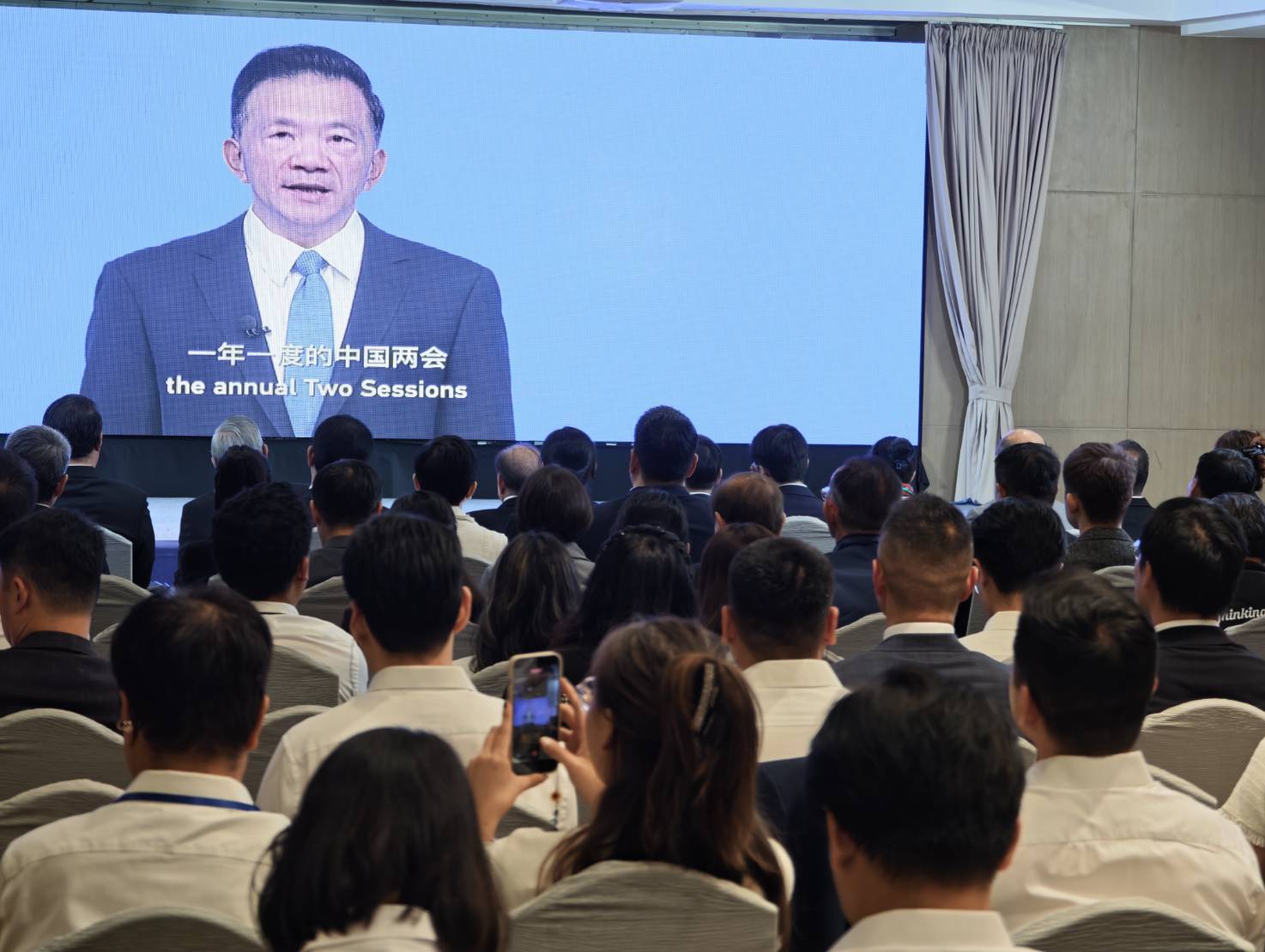 นายเซิ่น ระบุว่า การประชุมสองสภาของจีนซึ่งจัดขึ้นเป็นประจำทุกปี และเป็นหน้าต่างสำคัญในการติดตามจีนยุคใหม่ ยังคงดึงดูดความสนใจจากทั่วโลก โดยปีนี้ได้มีมติรับรองเอกสารสำคัญหลายฉบับ รวมถึง “โครงร่างแผนพัฒนาเศรษฐกิจและสังคมแห่งชาติระยะ 5 ปี ฉบับที่ 15” พร้อมกำหนดเป้าหมายการเติบโตของผลิตภัณฑ์มวลรวมภายในประเทศในปี 2026 ไว้ที่ร้อยละ 4.5 ถึง 5 โดยพิมพ์เขียวการพัฒนาคุณภาพสูงของจีนถือเป็นการเปิดโอกาสใหม่แก่ประชาคมโลก