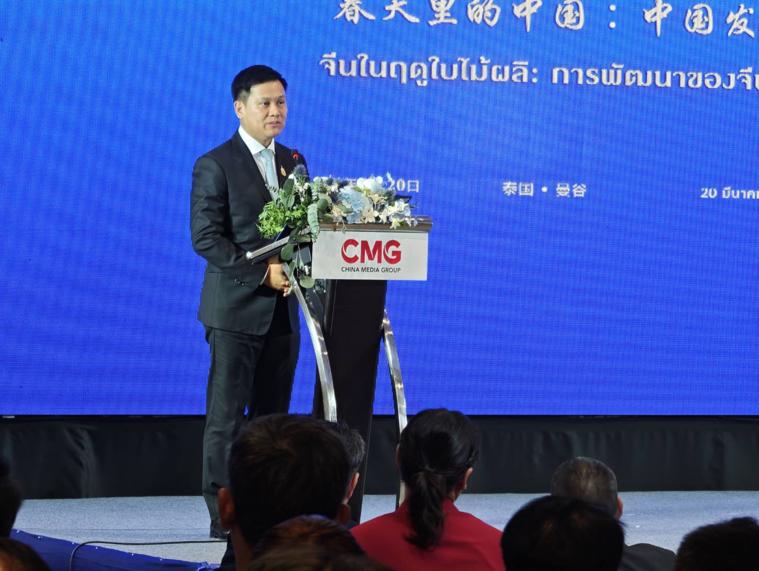China Media Group (CMG) จัดเวทีเสวนาระดับนานาชาติในหัวข้อ “จีนในฤดูใบไม้ผลิ : การพัฒนาของจีนและโอกาสของโลก” เมื่อวันที่ 20 มีนาคม 2569 ณ โรงแรมอวานี รัชดา กรุงเทพฯ นายเซิ่น ไห่ส่ง รัฐมนตรีช่วยว่าการกระทรวงสื่อสารมวลชนและผู้อำนวยการ China Media Group ได้กล่าวสุนทรพจน์ผ่านทางวิดีโอ ในหัวข้อ บทบาทของสื่อในการส่งเสริมความเข้าใจระหว่างประเทศ และการสร้างพื้นที่แลกเปลี่ยนมุมมองเกี่ยวกับการพัฒนาในยุคโลกาภิวัตน์