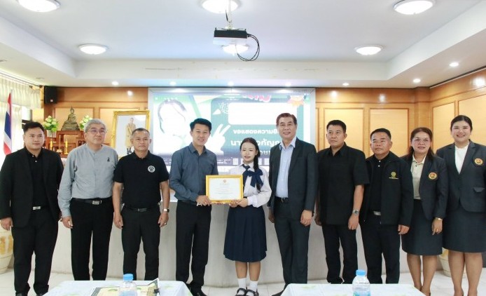 ในการนี้นายภาคิน ติระพงศ์ไพบูลย์ นายกเทศมนตรีเมืองมหาสารคาม มอบเกียรติบัตรแสดงความชื่นชมแก่ นางสาวกัญญาวีร์ อาจชมภู นักเรียนชั้นมัธยมศึกษาปีที่ 6 โรงเรียนเทศบาลบูรพาพิทยาคาร เนื่องในโอกาสสร้างชื่อเสียงด้วยการทำคะแนนเต็ม 100 คะแนน ในรายวิชาภาษาอังกฤษ จากการทดสอบทางการศึกษาระดับขั้นพื้นฐาน (O-NET) ประจำปีการศึกษา 2568 ซึ่งนับเป็นแบบอย่างที่ดีด้านความมุ่งมั่นและความเป็นเลิศทางวิชาการ ///ประดิษฐ์ อรรคฮาตศรี มหาสารคาม