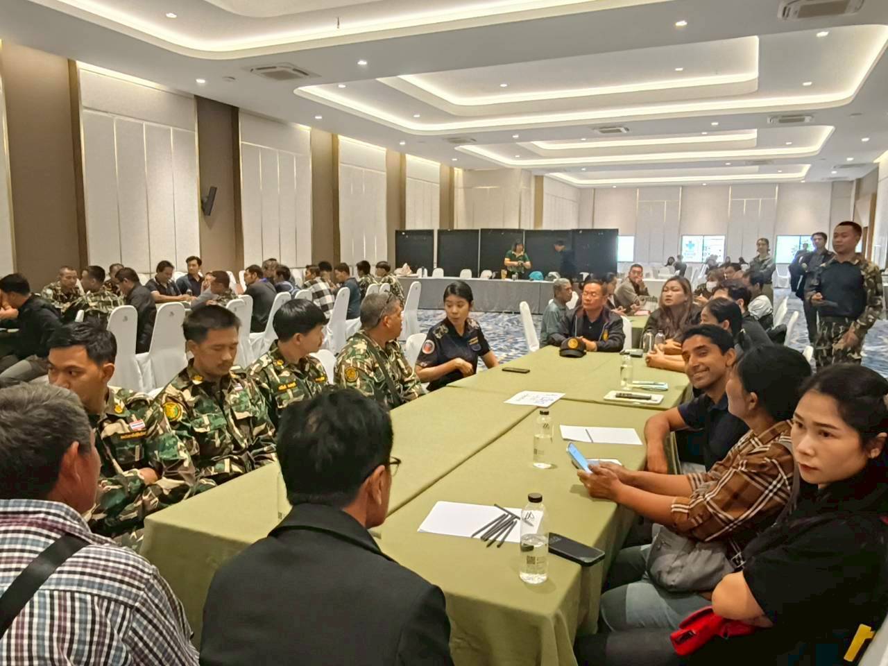 นายวสันต์ สุนจิรัตน์ ประธานสภาลมหายใจกาญจนบุรี (ประธานเครือข่ายเฝ้าระวังช้างป่าและสัตว์ป่าออกนอกพื้นที่อนุรักษ์ บ้านแก่งปลากด) ทีมเครือข่าย อส.อส.บ้านแก่งปลากด เครือข่าย อส.อส.อำเภอเมือง อำเภอบ่อพลอย อำเภอศรีสวัสดิ์ พร้อมด้วย เจ้าหน้าที่และหน่วยงานที่เกี่ยวข้อง ร่วมประชุมเวทีเชิงปฏิบัติการในครั้งนี้