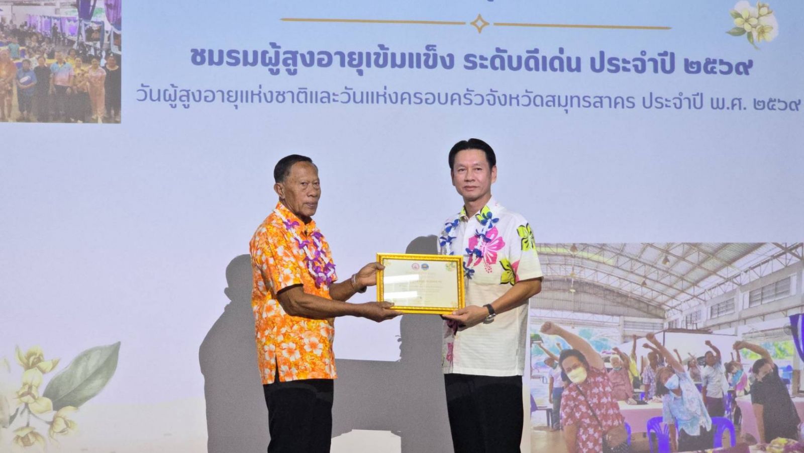 เมื่อเวลา 10.00 น.ของวันที่ 07 เมษายน 2569 นายอำนาจ เจริญศรี ผู้ว่าราชการจังหวัดสมุทรสาคร เป็นประธานเปิดงานวันผู้สูงอายุแห่งชาติและวันแห่งครอบครัวจังหวัดสมุทรสาคร ประจำปี พ.ศ. 2569 ณ ห้องประชุมหาญไกรวิไลย์ ชั้น 2 ศูนย์บริการคนพิการจังหวัดสมุทรสาคร ต.โคกขาม อ.เมืองฯ จ.สมุทรสาคร โดยมี นางสาวแสงดาว อารีย์ พัฒนาสังคมและความมั่นคงของมนุษย์จังหวัดสมุทรสาคร นายบรรพต จันทรวงษ์ ปลัดจังหวัดสมุทรสาคร ผู้แทนศูนย์พัฒนาครอบครัวในชุมชน หน่วยงานภาครัฐ ภาคเอกชน ภาคประชาสังคม ผู้มีเกียรติ และตัวแทนผู้สูงอายุจากชมรมต่างๆในจังหวัดสมุทรสาคร เข้าร่วม ในการนี้ผู้ว่าราชการจังหวัดสมุทรสาคร ได้มอบโล่ประกาศเกียรติคุณ ประกาศนียบัตร และดอกไม้แสดงความยินดี ให้แก่ พ.ต.ท.ศิริ ปลอดสมบูรณ์ ผู้สูงอายุที่เป็นแบบอย่างที่ดี จังหวัดสมุทรสาคร ประจำปี 2569,โรงเรียน ฒ.ผู้เฒ่าวิทยา เทศบาลนครอ้อมน้อย โรงเรียนผู้สูงอายุต้นแบบประจำจังหวัดสมุทรสาคร ,ชมรมผู้สูงอายุ ตำบลท่าไม้ ชมรมผู้สูงอายุเข้มแข็งประจำจังหวัดสมุทรสาคร,โรงเรียนผู้สูงอายุ (ชราบาล) เทศบาลตำบลสวนหลวง โรงเรียนผู้สูงอายุขับเคลื่อนงาน ในระดับดีมาก,ชมรมผู้สูงอายุตำบลแคราย ชมรมผู้สูงอายุระดับดีเด่น,ชมรมผู้สูงอายุตำบลท่าทราย ชมรมผู้สูงอายุระดับดีเด่น,พันจ่าเอกมานะ ตั๊งสมบูรณ์ ผู้สูงอายุดีเด่นแห่งชาติ ประจำปี 2569,ครอบครัวนายบุญยิ่ง เฉียวเฉ่ง ครอบครัวร่มเย็นจังหวัดสมุทรสาคร ประจำปี 2569,นายมาโนช ชื่นวารี บุคคลดีเด่นด้านการพัฒนาครอบครัว ประจำปี 2569 และ ศูนย์พัฒนาครอบครัวในชุมชนตำบลคอกกระบือ ศูนย์พัฒนาครอบครัวในชุมชน (ศพค.) ที่มีผลงานดีเด่นในการส่งเสริมความเข้มแข็งของครอบครัว ประจำปี 2569