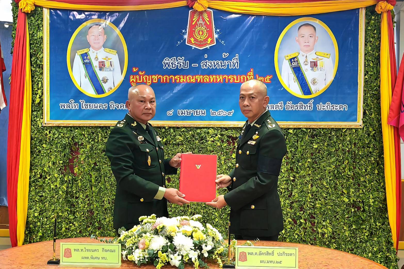 วันที่ 8 เมษายน 2569 ที่กองบัญชาการ มณฑลทหารบกที่ 25 ได้จัดกระทำพิธีรับ-ส่ง หน้าที่ผู้บัญชาการมณฑลทหารบกที่ 25 ณ บริเวณหน้ากองบัญชาการมณฑลทหารบกที่ 25