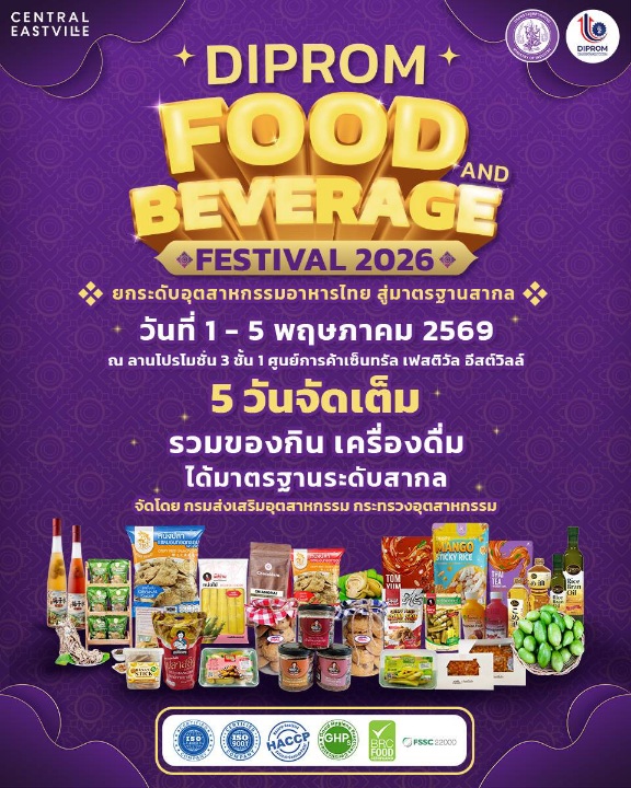 กองพัฒนาเกษตรอุตสาหกรรม กรมส่งเสริมอุตสาหกรรม (DIPROM) ขอเชิญทุกท่านเที่ยวงาน “FOOD AND BEVERAGE FESTIVAL 2026”