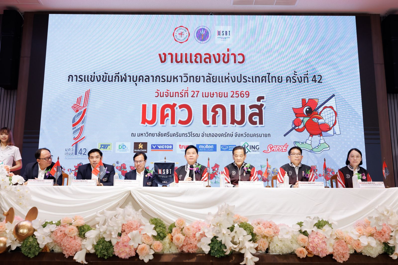 ***ผู้สื่อข่าวรายงาน วันที่ 27 เมษายน 2569 ที่ห้องประชุม ชั้น 1 อาคารวิศวกรรมศาสตร์ มศว องครักษ์ จ.นครนายก รศ.ดร.ชลวิทย์ เจียรจิตต์ อธิการบดีมหาวิทยาลัยศรีนครินทรวิโรฒ เป็นประธานแถลงข่าวการแข่งขันกีฬาบุคลากรมหาวิทยาลัยแห่งประเทศไทย ครั้งที่ 42 “มศว เกมส์” พร้อมด้วยผู้บริหารด้านกีฬาระดับประเทศเข้าร่วม อาทิ รศ.ดร.ชูสิทธิ์ ประดับเพ็ชร์ ประธานคณะกรรมการบริหารกีฬามหาวิทยาลัยแห่งประเทศไทย และ รศ.ดร.ชาญชัย สุขสุวรรณ์ รองประธานกรรมการกีฬามหาวิทยาลัยแห่งประเทศไทย โดยมหาวิทยาลัยศรีนครินทรวิโรฒ (มศว) ประกาศความพร้อมเป็นเจ้าภาพจัดการแข่งขัน ระหว่างวันที่ 27 พ.ค. – 4 มิ.ย. 2569 ณ มหาวิทยาลัยศรีนครินทรวิโรฒ อ.องครักษ์ จ.นครนายก ภายใต้แนวคิด “Health & Happiness” มุ่งส่งเสริมสุขภาพกายและใจ พร้อมสร้างความสามัคคีในหมู่บุคลากรจากทั่วประเทศ มีสถาบันอุดมศึกษาเข้าร่วมแข่งขัน 65 แห่ง รวมผู้เข้าร่วมกว่า 8,000 คน เพื่อชิงชัย 473 เหรียญทอง