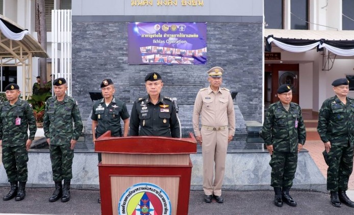 แม่ทัพภาคที่ 4 นำทีมส่งมอบชุดทดสอบสารเสพติด 125,000 ชุด ตอกย้ำนโยบายนายกรัฐมนตรี ด้วยโครงการ ภาครัฐจริงใจ ข้าราชการ ไร้ยาเสพติด (Ikhlas Operation) สร้างความเชื่อมั่นพื้นที่ชายแดนใต้ วันนี้ (18 พฤศจิกายน 2568) เวลา 06.15 น. ที่หน้าอาคาร 1 กองอำนวยการรักษาความม...