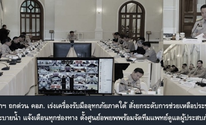 นายกฯ ถกด่วน คอภ. เร่งเครื่องรับมืออุทกภัยภาคใต้ สั่งยกระดับการช่วยเหลือประชาชน ระบายน้ำ แจ้งเตือนทุกช่องทาง ตั้งศูนย์อพยพพร้อมจัดทีมแพทย์ดูแลผู้ประสบภัย นายอนุทิน ชาญวีรกูล นายกรัฐมนตรีและรัฐมนตรีว่าการกระทรวงมหาดไทยเป็นประธานการประชุมคณะกรรมการอำนวยการและบริ...