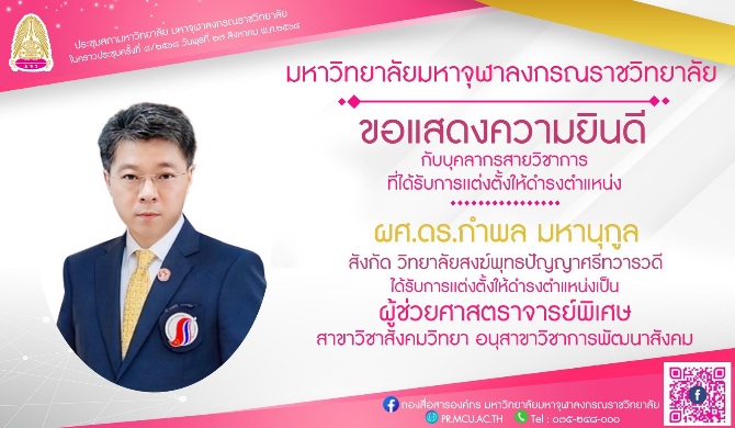 ประธานบริหาร นสพ อปทนิวส์ และนายกสมาคมผู้สื่อข่าวไทยจีน ดร กำพล มหานุกูล ได้รับการแต่งตั้งเป็นผู้ช่วยศาศตราจารย์ พิเศษ สาขาวิชาสังคมวิทยา อนุสาขาวิชาพัฒนาสังคม จาก มหาวิทยาลัยมหาจุฬากรณราชวิทยาลัย
