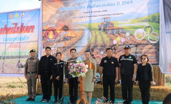 น่าน-ชวนเกษตรกร “หยุดเผา” เดินหน้าไถกลบตอซัง ลด PM2.5 ฟื้นดิ