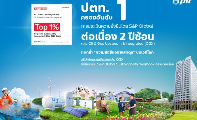ปตท. ครองอันดับ 1 ของโลก ด้วยคะแนนสูงสุดต่อเนื่อง 2 ปีซ้อน จากการประเมินความยั่งยืนโดย S&P Global กลุ่ม Oil & Gas Upstream & Integrated (OGX) สะท้อนความเป็นผู้นำด้านยั่งยืนในเวทีโลก ดร.คงกระพัน อินทรแจ้ง ประธานเจ้าหน้าที่บริหารและกรรมการผู้จัดการใ...