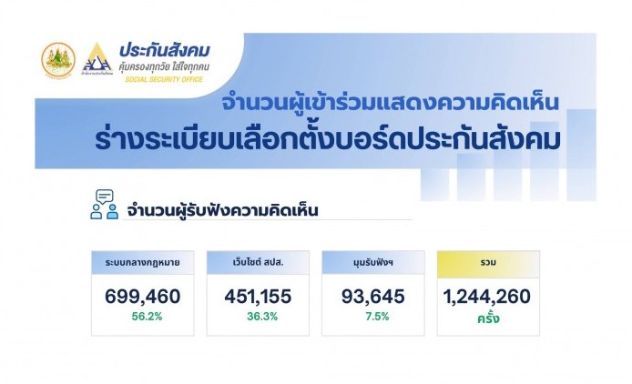 สปส. เผยจำนวนผู้เข้าร่วมแสดงความคิดเห็นร่างระเบียบเลือกตั้งบ...