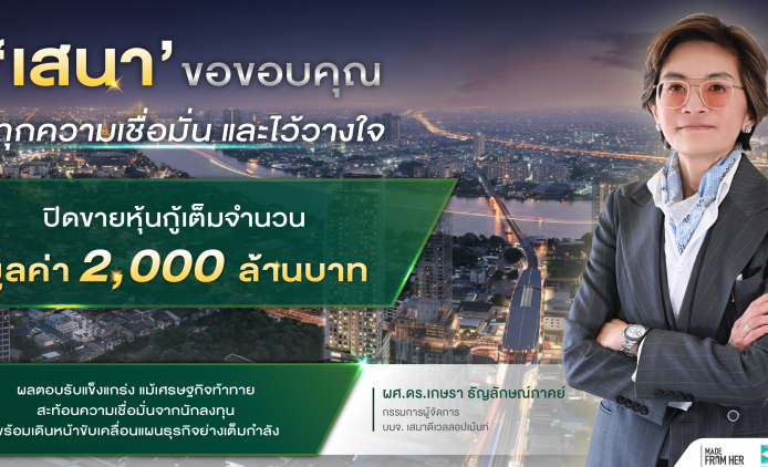 เสนา ปิดขายหุ้นกู้ 2,000 ลบ. เต็มจำนวน