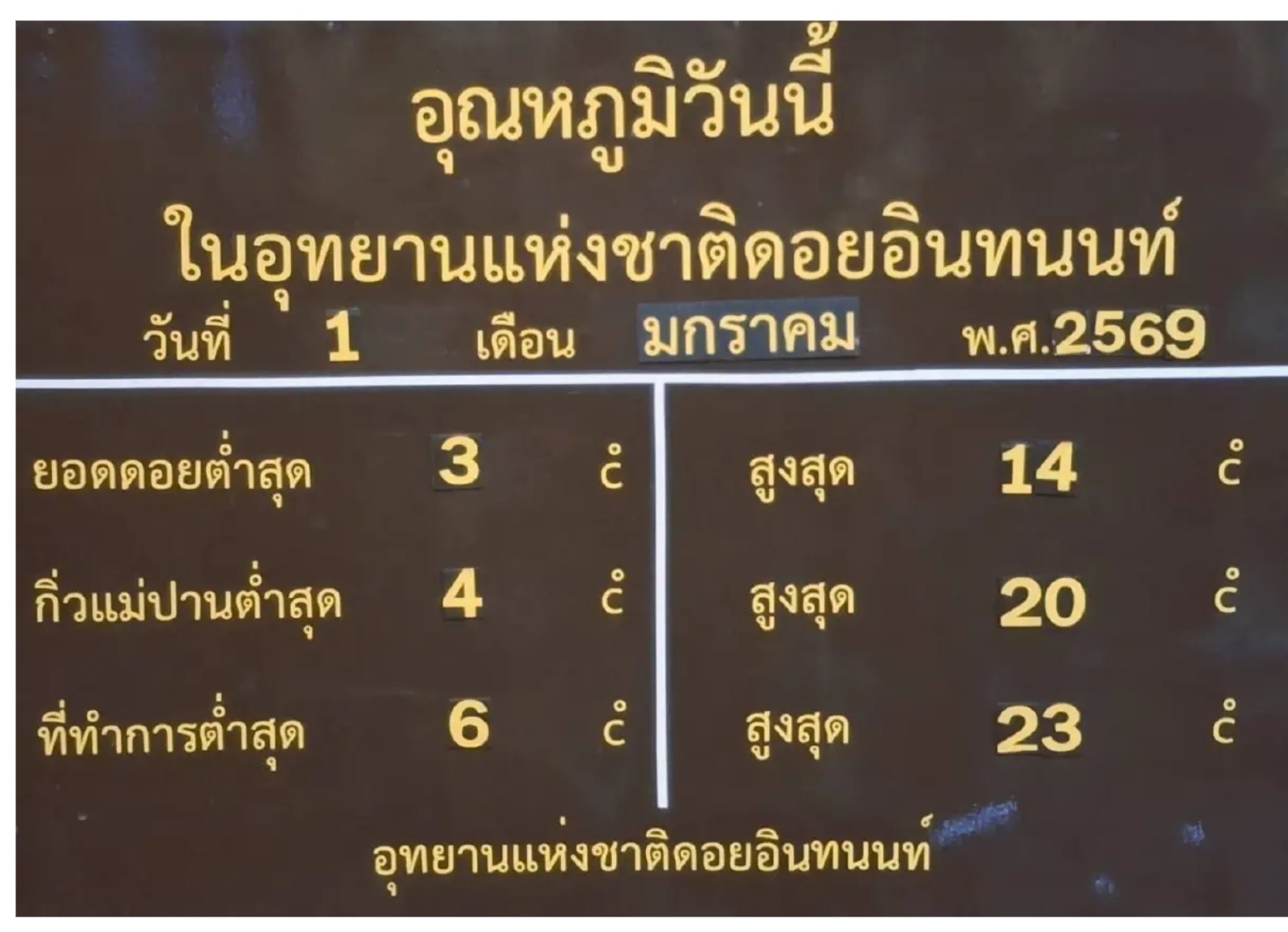• ยอดดอยอินทนนท์: อุณหภูมิอากาศ 3°C แต่ อุณหภูมิยอดหญ้าติดลบถึง -3.5°C