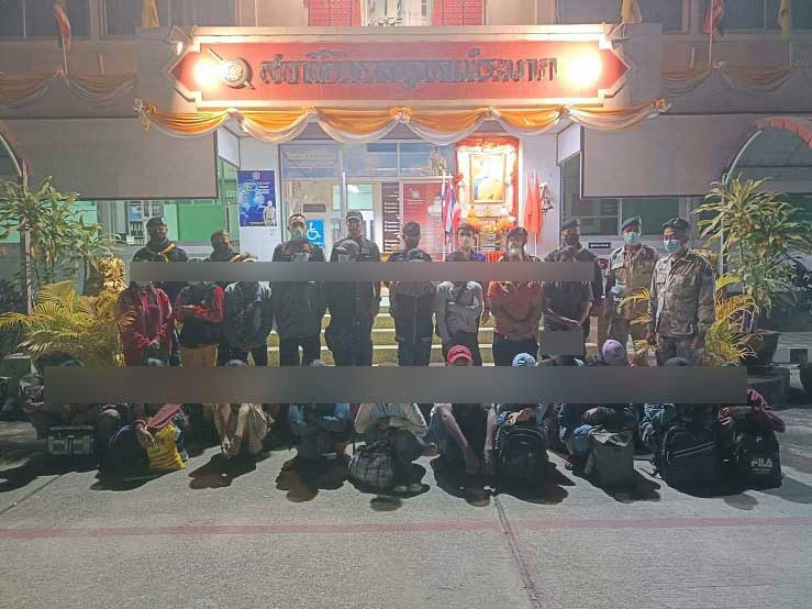ในเวลาต่อมาเจ้าหน้าที่ตรวจพบขวดน้ำดื่มซึ่งเพิ่งเปิดดื่มมาใหม่ถูกทิ้งอยู่ในป่ารกทึบติดแนวชายแดนเจ้าหน้าที่จึงสะกดรอยติดตามเพื่อตรวจสอบและจากการส่องกล้องส่องทางไกลพบกลุ่มแรงงานผิดกฎหมายจำนวนมากกำลังหลบซ่อนตัวอยู่ป่าทึบเจ้าหน้าที่จึงรีบวางกำลังซุ่มดูพฤติกรรม จนเวลาต่อมาพบรถยนต์กระบะ 2 คันขับมาด้วยความเร็วมุ่งหน้าไปในจุดที่กลุ่มแรงงานผิดกฎหมายหลบซ่อนตัวอยู่และเมื่อรถยนต์ทั้งสองคันจอดเจ้าหน้าที่ทหารพรานตรวจพบชาย 2 คนเป็นคนขับรถยนต์ทั้งสองคันจากนั้นกลุ่มแรงงานจึงรีบวิ่งขึ้นรถยนต์ที่มาจอดรับเจ้าหน้าที่ทหารพรานและฝ่ายที่เกี่ยวซึ่งวางกำลังสองชั้นปิดทางเข้าออกทุกเส้นทางหลบหนีจึงแสดงตัวเข้าตรวจสอบและจับกุมตัวทุกคนได้โดยไม่มีใครหลบหนีไปได้แม้แต่รายเดียวและจับได้แบบคาหนังคาเขาและจากการตรวจสอบพบรถยนต์กระบะ ยี่ห้ออีซูซุ สีเทา หมายเลขทะเบียน 3 ฒภ-8257 กรุงเทพ มีนายต้อง แซ่ม้า อายุ 40 ปีเป็นคนขับภายในรถพบแรงงานต่างด้าวผิดกฎหมายซ่อนท้ายกระบะรถจำนวน 9 คน ส่วนรถยนต์อีกคันเป็นรถยนต์กระบะ โตโยต้า สีดำ หมายเลขทะเบียน บน-5655 ตาก มีนายทาม แซ่ย้า อายุ 29 ปีเป็นคนขับรถคันดังกล่าวและตรวจภายในรถพบแรงงานต่างด้าวผิดกฎหมายซ่อนตัวในรถยนต์จำนวน 10 คน ซึ่งทั้งหมดเป็นแรงงานสัญชาติเมียนมาและรวมแรงงานต่างด้าวผิดกฎหมายที่ถูกจับกุมทั้งสิ้นจำนวน 19 ราย เจ้าหน้าที่ทหารพรานจึงนำตัวคนขับรถทั้งสองคันพร้อมแรงงานต่างด้าวผิดกฎหมายทั้ง 19 คนไปทำการสอบสวนขยายผลอย่างเร่งด่วน