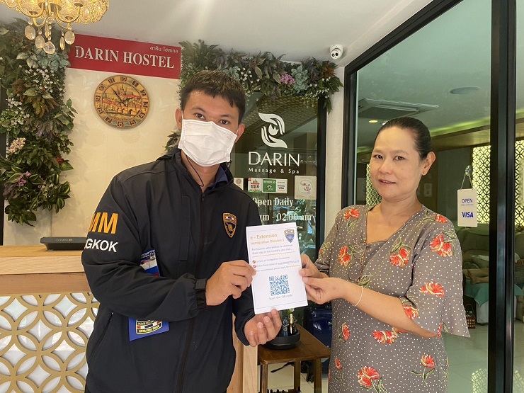 ในกรณีคนต่างด้าวเปลี่ยนมาขอรับบริการผ่านระบบ "e – Extension” (Electronics Extension of Temporary Stay in The Kingdom : e – Extension) นักท่องเที่ยว ชาวต่างชาติ สามารถดำเนินการกรอกข้อมูลได้ด้วยตนเองตลอดเวลา ผ่านระบบออนไลน์บนอุปกรณ์โทรศัพท์มือถือและคอมพิวเตอร์ผ่านเว็บไซต์ และเข้ามาพบเจ้าหน้าที่เพื่อยืนยันตัวบุคคลเพื่อรับสติ๊กเกอร์วีซ่า โดยใช้ระยะเวลาไม่เกิน 3 - 5 นาทีต่อรายเท่านั้น