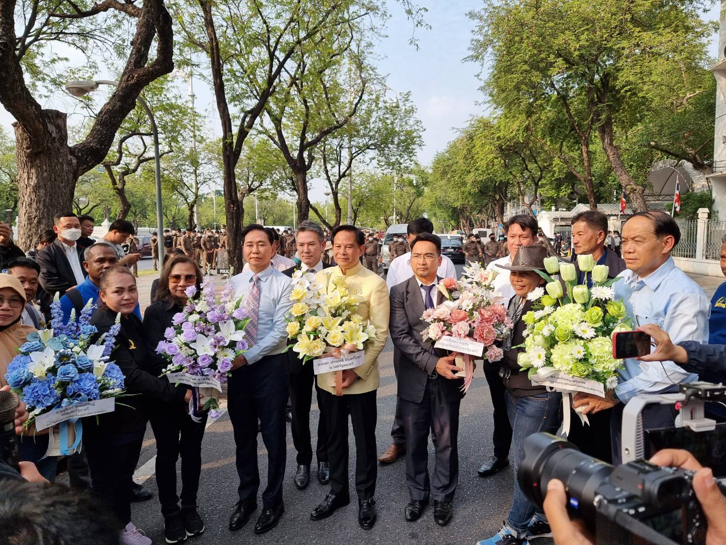 วันอังคารที่ 14 มีนาคม 2566 ที่ประตู 5 ทำเนียบรัฐบาล เวลา 16.00 น เลขาธิการนายกรัฐมนตรี(นายพีระพันธ์ สารีรัฐวิภาค)รองเลขาธิการนายกรัฐมนตรีฝ่ายการเมือง(นายไชยยศ จิราเมธากร) ผู้ช่วยรัฐมนตรีประจำนายกรัฐมนตรี(นายชื่นชอบ คงอุดม) และเลขาธิการสำนักงาน กฟก (นายสไกร พิมพ์บึง) ร่วมรับกระเช้าดอกไม้และรับมอบแทนนายกรัฐมนตรี (พลเอกประยุทธ์ จันทร์โอชา) รองนายกรัฐมนตรี/รัฐมนตรีว่าการกระทรวงพาณิชย์ (นายจุรินทร์ ลักษณวิศิษฏ์) และรัฐมนตรีว่าการกระทรวงเกษตรและสหกรณ์(ดร เฉลิมชัย ศรีอ่อน) เพื่อแสดงความขอบคุณรัฐบาลที่คณะรัฐมนตรี มีมติเห็นชอบให้ธนาคารของรัฐ 4 แห่ง ดำเนินการปรับโครงสร้างหนี้ให้เกษตร 50,621 ราย โดยเกษตรกรรับหนี้ ครึ่งหนึ่งของเงินต้น(50 % ของเงินต้น 15,442 ล้านบาท) คือ 7,721 ล้านบาท โดยทำสัญญาไม่เกิน 15 ปี ส่วนเงินต้นอีกครึ่งหนึ่ง คือ 7,721 ล้านบาท รวมดอกเบี้ยและค่าสูญเสียรายได้ของธนาคารทั้ง 4 แห่งจำนวน 7,760 ล้านบาท รวมเป็นเงิน 15,481 ล้านบาท ให้ธนาคารขอชดเชยโดยเสนอคณะรัฐมนตรี อนุมัติเป็นปีๆไป ตามจำนวนเงินที่เกษตรชำระปิดบัญชีเงินต้นครึ่งแรกครบถ้วนแล้ว ก่อนเกษตรกรจากทั้ง 4 ภาคจากทั่วประเทศ ที่มาชุมนุมจะแยกย้ายเดินทางกลับภูมิลำเนา