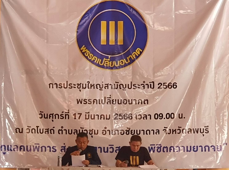 ซึ่งนายภิญโญ ผอ.พรรคเปลี่ยนอนาคต และดร.อัครนันท์ หน.พรรคฯ ได้กล่าวกับพี่น้องประชาชนชาวชัยบาดาลว่า “รู้มั๊ยว่า สิทธิคนพิการ ไม่ใช่แค่ขึ้นทะเบียนแล้วรับเงิน 800 บาทหรือ 1,000 บาทเท่านั้น แต่พ.ร.บ.คนพิการได้เพิ่มสิทธิให้คนพิการและครอบครับที่ด้วย เช่น สิทธิในการกู้ยืมเงินกองทุนส่งเสริมและพัฒนาคุณภาพชีวิตคนพิการในการประกอบอาชีพรายละไม่เกิน 120,000 บาท แบบไม่เสียดอกเบี้ย,หรือ ระเบียบการปรับปรุงบ้าน ที่คนพิการและครอบครัวมีสิทธิได้รับครอบครัวละ 40,000 บาท, และคนดูแลคนพิการก็มีสิทธิได้รับเงินช่วยเหลืออีกด้วย แต่บนความไม่รู้ว่ามีสิทธิเป็นช่องโหว่ในการหาผลประโยชน์ เช่นในต่างจังหวัดมีกรณีเจ้าหน้าที่รัฐนำโถส้วมไปแจกตามบ้านแล้วให้คนพิการลงลายมือชื่อรับโถส้วมมูลค่า 20,000 บาท ไปแทนแบบไม่รู้ตัว จนเสียสิทธิการปรับปรุงบ้านไป” นายภิญโญ ผอ.พรรค และ ดร.อัครนันท์ หน.พรรคกล่าว