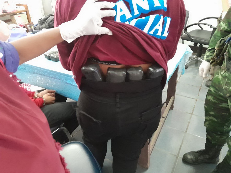 โดยเจ้าหน้าที่พบบุคคลต้องสงสัยเป็นชาย 1 รายหญิง 1 รายนั่งโดยสารอยู่เบาะที่นั่งที่ 7 และ 8 โดยมีกระเป๋าเสื้อผ้า 1 ใบ เจ้าหน้าที่จึงได้ทำการตรวจค้นหาสิ่งผิดกฎหมายผลปรากฎพบยาเสพติดให้โทษประเภท 1 (ยาบ้า)ซุกซ่อนปะปนเสื้อผ้าอยู่ในกระเป๋าแบบหูหิ้วจำนวน 2 มัด นับรวมกันได้ จำนวน 3,978 เม็ด ดังนั้นเจ้าหน้าที่จึงจับกุมตัวผู้ต้องหาทั้ง 2 พร้อมนำของกลางไปที่ สภ.สังขละบุรี เพื่อดำเนินคดีตามกฎหมาย