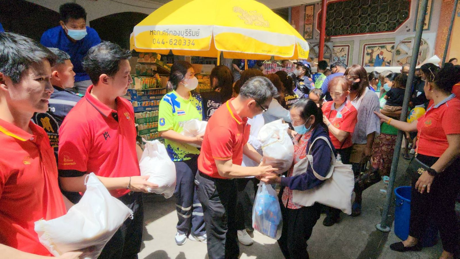 โดยในปีนี้ได้มีเด็ก คนชรา และผู้ยากไร้จากอำเภอต่างๆ ในเขตพื้นที่จังหวัดบุรีรัมย์ และจังหวัดข้างเคียง มาเข้าคิวรอรับบริจาคสิ่งของ ข้าวสารอาหารแห้งมากกว่า 5,000 คน เนื่องจากได้รับผลกระทบจากภาวะเศรษฐกิจ ข้าวของราคาแพง สำหรับข้าวสารอาหารแห้ง และสิ่งของที่นำมาแจกจ่ายให้กับผู้ยากไร้ในครั้งนี้ ได้รับบริจาคจากพ่อค้าประชาชน ผู้มีจิตศรัทธาทั้งใน และต่างจังหวัด นอกจากนั้น สิ่งของข้าวสารอาหารแห้ง ส่วนหนึ่งที่เหลือจากการแจกทาน ทางมูลนิธิฯ ก็จะได้นำไปมอบให้กับโรงเรียนที่ยากไร้ ขาดแคลน ในถิ่นทุรกันดารตามแนวชายแดน และราษฎรที่ประสบปัญหาภัยพิบัติทั้งน้ำท่วม ภัยแล้งในพื้นที่