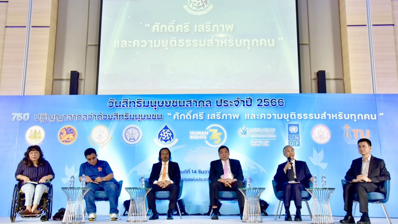 วันที่ 14 ธันวาคม ที่สถาบันเพื่อการยุติธรรมแห่งประเทศไทย (TIJ) ถนนแจ้งวัฒนะ กรุงเทพฯ คณะกรรมการสิทธิมนุษยชนแห่งชาติ (กสม.) จัดงานวันสิทธิมนุษยชนสากล 10 ธันวาคม ประจำปี 2566 ในหัวข้อ 75 ปี ปฏิญญาสากลว่าด้วยสิทธิมนุษยชน “ศักดิ์ศรี เสรีภาพ และความยุติธรรมสำหรับทุกคน”