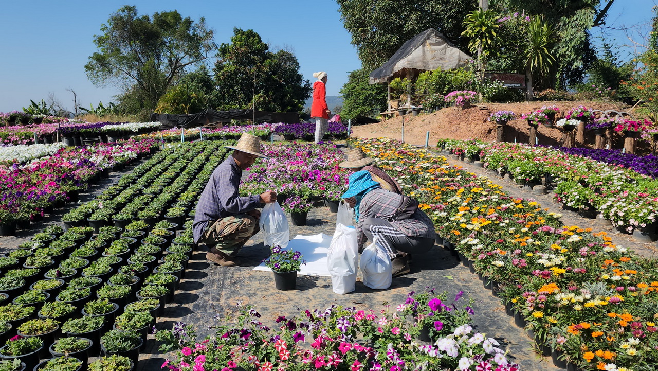 ***นายวิชิต โสประดิษฐ์ เจ้าของสวน เล่าว่า ได้เช้าที่ดินทำสวนดอกไม้ทั้งหมด 4-5 ไร่ ลงทุนปลูกต้นพิทูเนีย 10,000 ต้น ในพื้นที่กว่า 2 ไร่ และยังมีไม้ดอก ดาวเรือง สร้อยไก่ ซันเวีย เดซี่ กาวาเนีย อีก 2 ไร่ ปีนี้ขายยากมาก จากสภาพอากาศ ฝนก็ตกลงมา ปีนี้ก็ไม่หนาว และเพิ่งหนาวมา 2-3 วันนี้เอง และยิ่งอากาศร้อนพิทูเนียดอกจะไม่สด นักท่องเที่ยวที่ขับรถผ่านจะแวะมาซื้อ 4-5 ต้น ส่วนพ่อค้าที่ซื้อไปขายต่อก็น้อยลงเพราะอากาศไม่หนาวเหมือนทุกปี ส่วนโรงแรม รีสอร์ท และแหล่งท่องเที่ยว ที่ซื้อไปประดับสวนก็มาซื้อน้อยมาก ซึ้งปี้นี้ดอกไม้กระถางขายไม่ได้หายไปครึ่งหนึ่งของปีที่แล้ว เมื่อปีที่แล้วช่วงปีใหม่ขายไปเหลือนิดเดียว ส่วนปีนี้เหลือที่ขายไม่ออก 70 % ปีนี้ต้องยอมขาดทุน ปีนี้ยังไม่ได้ทุนคืนเลย สำหรับใครที่ต้องการซื้อไปประดับสวนหรือนำไปขายสามารถติดต่อได้ที่เบอร์ 093-1238961