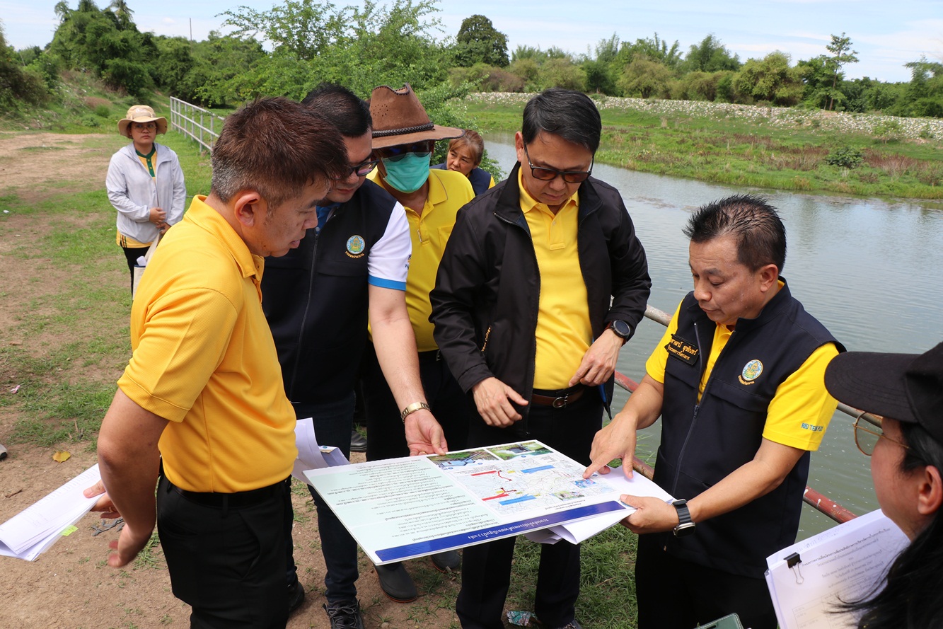 โดยผู้ว่าราชการจังหวัดกาญจนบุรี และคณะ ฯ ลงพื้นที่ ฯ ตรวจเยี่ยมตามจุดต่างๆ ได้แก่ โครงการฝ่ายุทดน้ำบ้านหนองแดงอันเนื่องมาจากพระราชดำริ ระบบกระจายน้ำฝายทดนำบ้านหนอง โรงเรียนชาวนายุคใหม่ตามหลักปรัชญาเศรษฐกิจพอเพียง การเพาะเลี้ยงสัตว์น้ำในกระชังบก การแปรรูปผลิตภัณฑ์จากเนื้อสัตว์ การส่งเสริมการปลูกหญ้าแฝกเพื่อป้องกันการชะล้างพังทลายของดิน จัดทำระบบอนุรักษ์ดินและน้ำ เพื่อเพิ่มพื้นที่กักเก็บน้ำ บ่อดักน้ำ คูระบายน้ำฝ่ายชะลอน้ำ (Soil Cement)