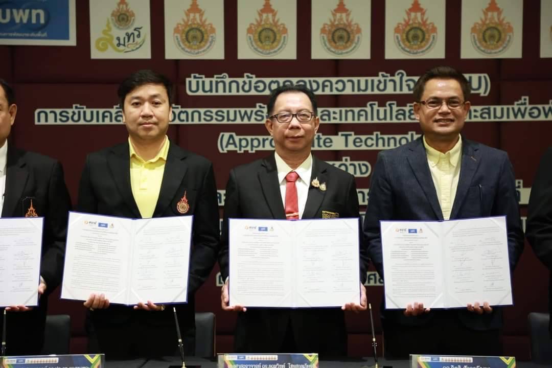 มทร.รัตนโกสินทร์ นำโดย รศ.ดร.อุดมวิทย์ ไชยสกุลเกียรติ อธิการบดี ในนามประธานอธิการบดีมหาวิทยาลัยเทคโนโลยีราชมงคล (ทปอ.มทร.) ร่วมลงนามในบันทึกข้อตกลงความร่วมมือ (MOU) การขับเคลื่อนนวัตกรรมพร้อมใช้และเทคโนโลยีที่เหมาะสมเพื่อพัฒนาพื้นที่ (Appropriate Technology) ระหว่างหน่วยบริหารและจัดการทุนด้านการพัฒนาระดับพื้นที่ (บพท.) กับเครือข่ายมหาวิทยาลัยเทคโนโลยีราชมงคล โดยมีผู้ร่วมลงนาม