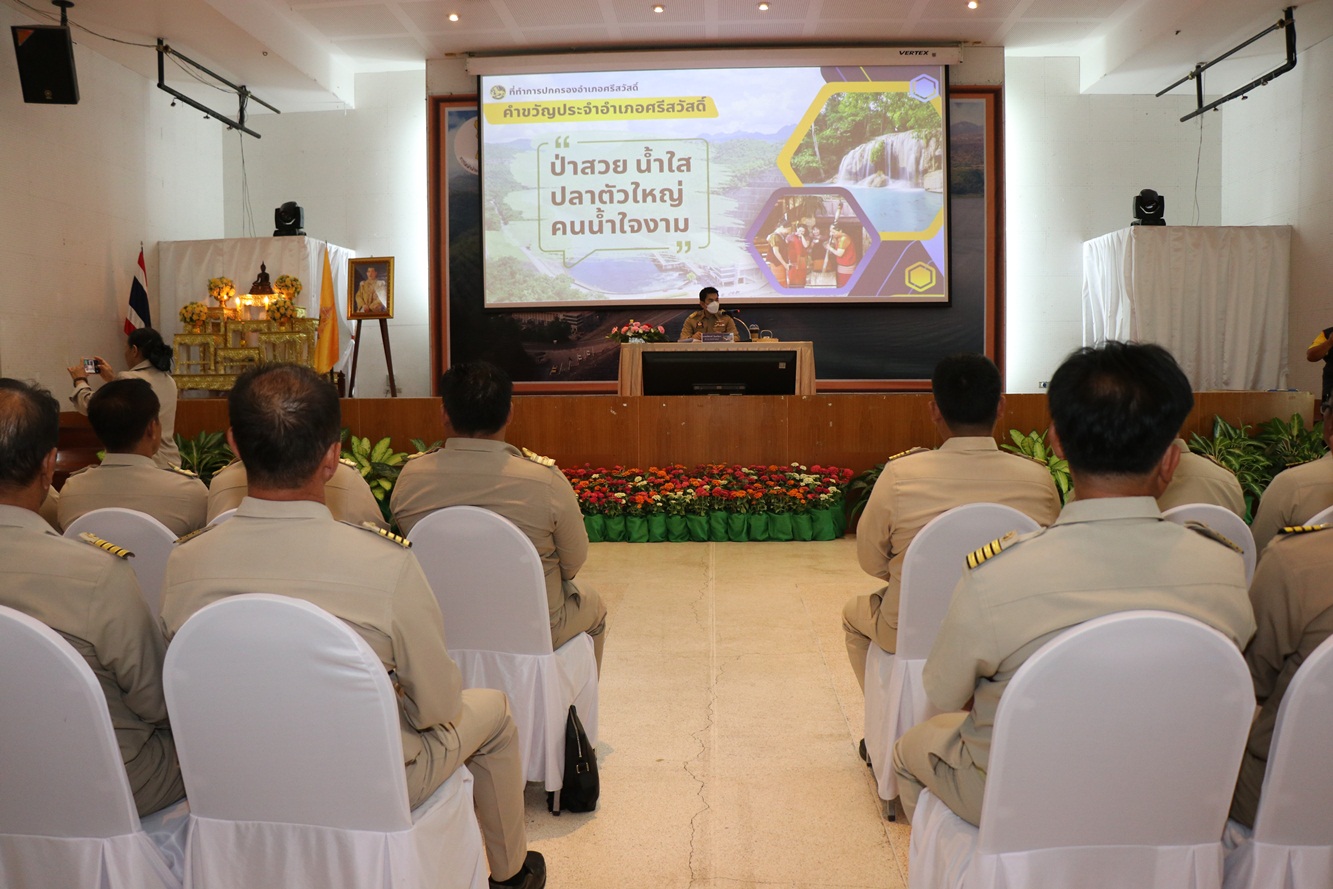โดยนายอำเภอศรีสวัสดิ์ได้นำเสนอภาพรวมเกี่ยวกับอำเภอศรีสวัสดิ์ คำขวัญอำเภอ สภาพพื้นที่ การปกครองท้องที่ การปกครองส่วนท้องถิ่น การใช้ประโยชน์พื้นที่และพื้นที่เกษตร ของดีศรีสวัสดิ์ ได้แก่ สถานที่ท่องเที่ยว วัฒนธรรม อาหาร โครงการกิจกรรมการท่องเที่ยว เช่น งานวิ่ง คอนเสิร์ต ล่องแพ เผาข้าวหลาม และโอกาสของอำเภอศรีสวัสดิ์ อีก 5 ปีข้างหน้า และรายงานสภาพปัญหาในพื้นที่