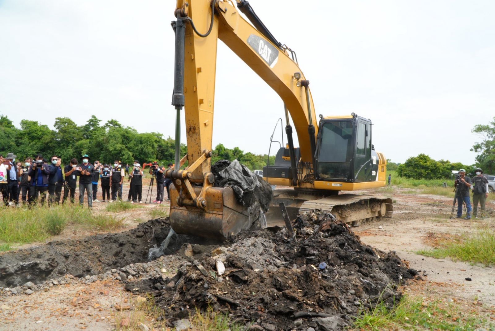 โดยมีอุตสาหกรรมจังหวัดฉะเชิงเทรา นำเสนอ จากนั้น ได้ร่วมสำรวจ ตรวจสอบการลักลอบฝังกลบในพื้นที่ดังล่าว