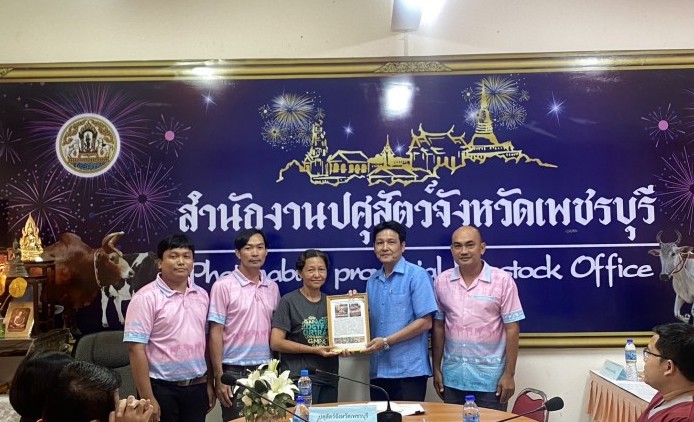 ผู้สื่อข่าวรายงานว่า เมื่อวันที่ 21 ส.ค.68 เวลา 10.00 น. น.สพ.ชาติชาย ยิ้มเครือ ปศุสัตว์จังหวัดเพชรบุรี พร้อมกับ นายสนั่น สุขนิรัญ นายกเทศมนตรีตำบลหนองขนาน นายอิสรา หล้าสุดตา ปศุสัตว์อำเภอเมืองเพชรบุรีและเจ้าหน้าที่กลุ่มพัฒนาคุณภาพสินค้าปศุสัตว์ ลงพื้นที่ ม.5 ต.หนองขนาน อ.เมือง จ.เพชรบุรี ซึ่งมีเกษตรกรเลี้ยงโคขุนในพื้นที่จำนวนมาก จับมือกับประธานกลุ่มแปลงใหญ่ผู้เลี้ยงโคขุนต.หนองขนาน มีสมาชิก 30 ราย เลี้ยงโคขุน รวมประมาณ 1,500 ตัว สนับสนุนการเลี้ยงโคขุน ไม่ใช้สารเร่งเนื้อแดง พร้อมทำบันทึกข้อตกลงความร่วมมือ (MOU) กัน เพื่อสร้างความปลอดภัยแก่ผู้บริโภค ตามนโยบายของ นายอรรถกร ศิริลัทธยากร รัฐมนตรีว่าการกระทรวงเกษตรและสหกรณ์ ที่ได้ประกาศจุดยืนไม่ใช้สารเร่งเนื้อแดงในประเทศไทย