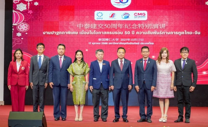 วันที่ 30 สิงหาคม 2568 ผู้อบรมหลักสูตรผู้บริหารรุ่นใหม่ธุรกิจไทย-จีน รุ่นที่ 2 (Young Executive Program บทจ. 2) ได้เข้าฟังบรรยายและร่วมแลกเปลี่ยนเสวนาในหัวข้อ "E-Commerce กับการค้าไทย-จีน" โดยวิทยากรคือ นายตฤณ วุ่นกลิ่นหอม นายกสมาคมการค้าดิจิทัลไทย มาบรรยายให้ความรู้ แบ่งปันประสบการณ์และข้อมูลเชิงลึกที่น่าสนใจหลายประเด็น ณ โรงแรม ดิ เอมเมอรัลด์ กรุงเทพฯ โดยหลักสูตรนี้เกิดขึ้นจากความร่วมมือของสถาบันสื่อและบริหารธุรกิจไทย-จีน, สมาคมผู้สื่อข่าวไทย-จีน และหอการค้าไทย-จีน ซึ่งได้รับการสนับสนุนจากสถานเอกอัครราชทูตสาธารณรัฐประชาชนจีนประจำประเทศไทย และ China Media Group เพื่อขับเคลื่อนความสัมพันธ์อันดีระหว่างสองประเทศอย่างยั่งยืน