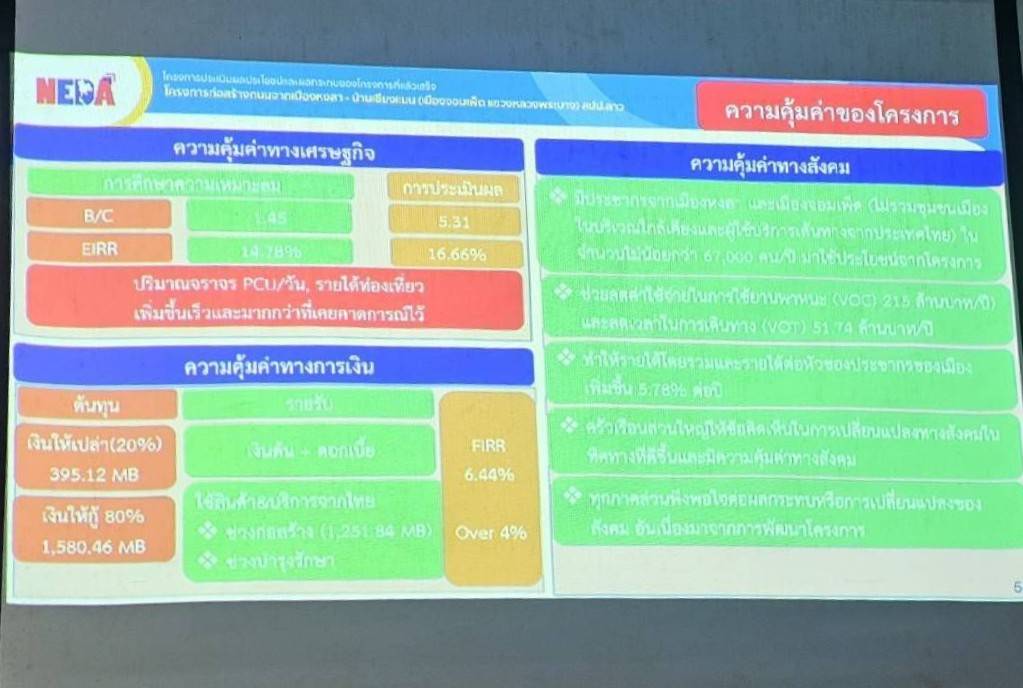 การสัมมนามีวัตถุประสงค์เพื่อนำเสนอข้อมูลเชิงลึกด้านเศรษฐกิจ สังคม และสิ่งแวดล้อม หลังการก่อสร้างถนนสายสำคัญ ซึ่งเป็นเส้นทางเชื่อมโยงการค้าและการท่องเที่ยวระหว่างจังหวัดน่านของไทยกับแขวงหลวงพระบาง สปป.ลาว โดยคาดว่าจะเป็นโครงสร้างพื้นฐานที่มีบทบาทสำคัญต่อการค้าการลงทุนในระดับอนุภูมิภาค
