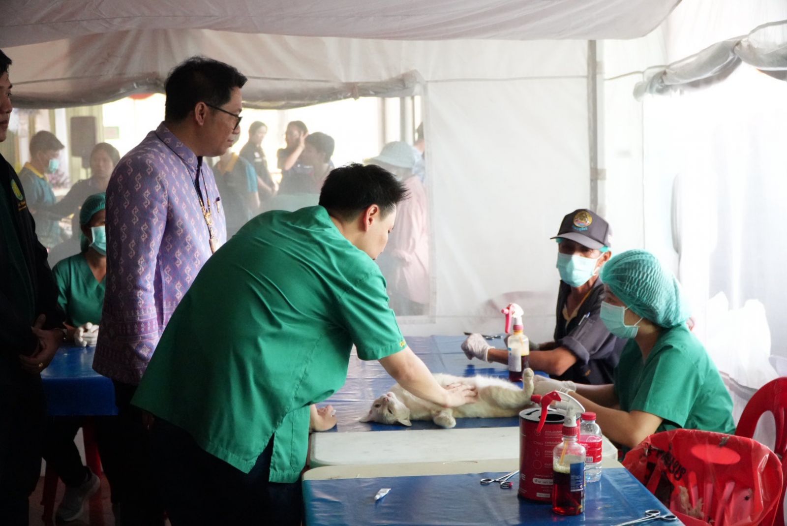 วันนี้ 18 กันยายน 2568 ณ วัดบางไทร ตำบลโยธะกา อำเภอบางน้ำเปรี้ยว จังหวัดฉะเชิงเทรา นายอรรถกร ศิริลัทธยากร รัฐมนตรีว่าการกระทรวงเกษตรและสหกรณ์ เป็นประธานเปิดโครงการ เร่งรัดผ่าตัดทำหมันสุนัขและแมว เพื่อควบคุมและป้องกันโรคพิษสุนัขบ้า ในพื้นที่เสี่ยงจังหวัดฉะเชิงเทรา ปีงบประมาณ พ.ศ.2568 ภายใต้ “โครงการสัตว์ปลอดโรค คนปลอดภัยจากโรคพิษสุนัขบ้า”