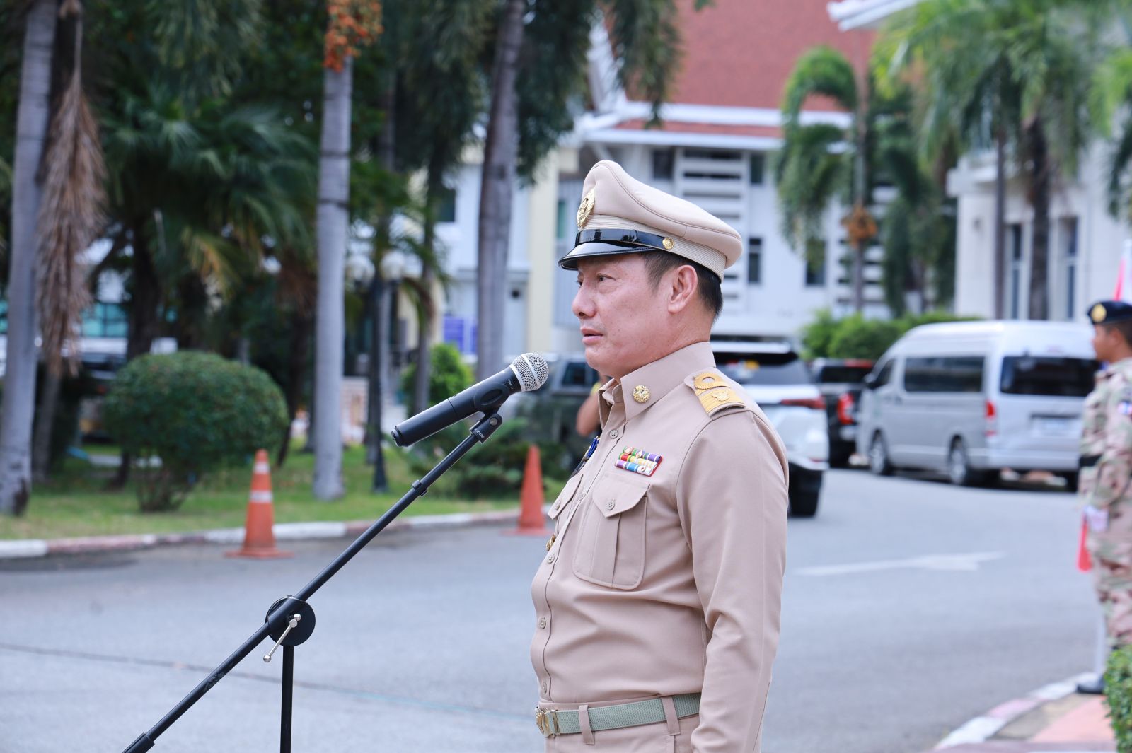 วันจันทร์ที่ 29 กันยายน พ.ศ. 2568 นายชัยพร แพภิรมย์รัตน์ รองผู้ว่าราชการจังหวัดชลบุรี นำข้าราชการ ทหาร ตำรวจ ศาลตุลาการ องค์กรปกครองส่วนท้องถิ่น ร่วมใจเคารพธงชาติ เนื่องในวันพระราช ทานธงชาติไทย ณ บริเวณหน้าเสาธง หน้าศาลากลางจังหวัดชลบุรี อำเภอเมืองชลบุรี จังหวัดชลบุรี