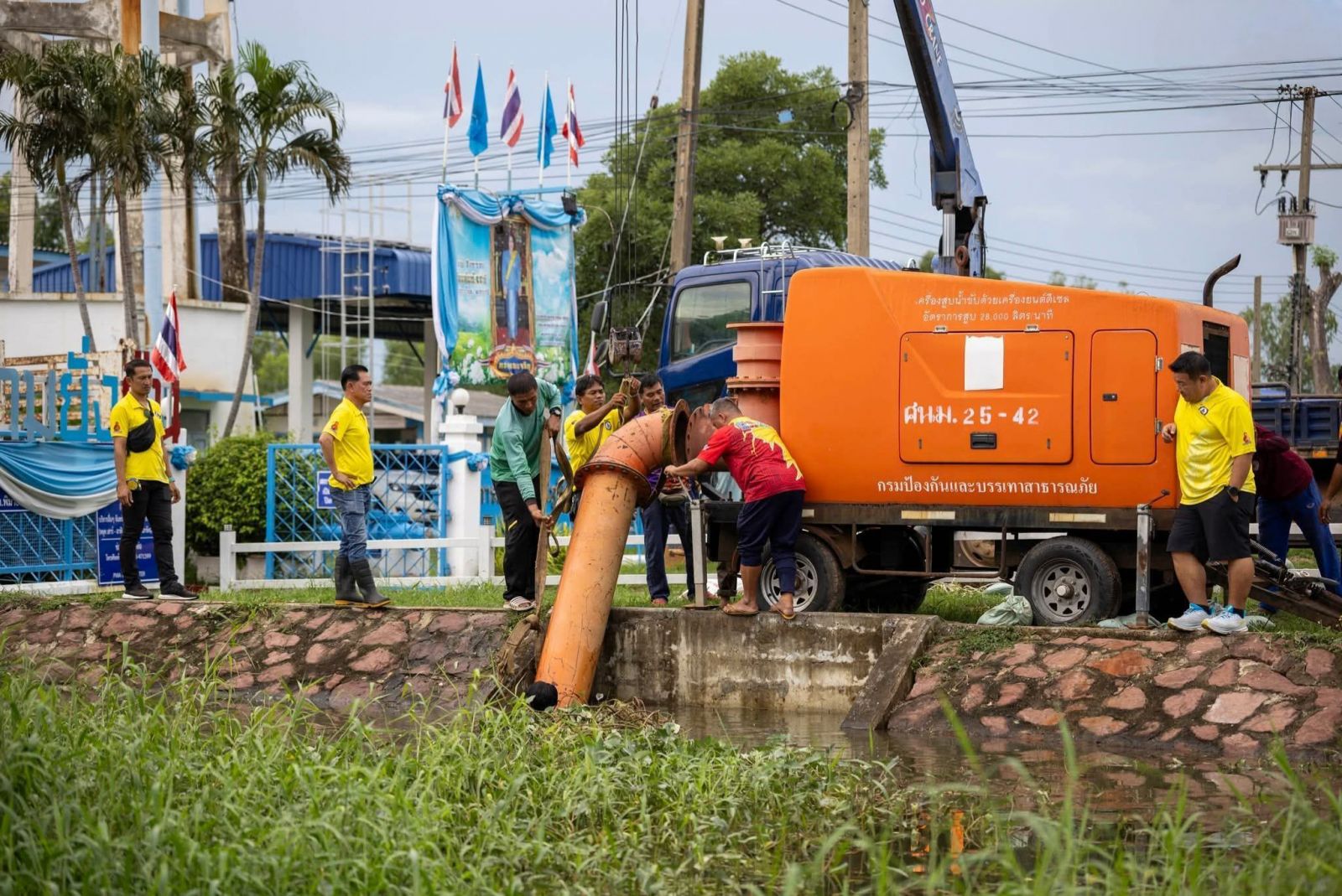 นครราชสีมา/// บ่ายวันที่ 29 ก.ย.68 นายก้องเกียรติ วิชชาพิณ นายกเทศมนตรีเทศบาลตำบลพิมาย อ.พิมาย จ.นครราชสีมา พร้อมด้วย นายปริษกร จรนิเทศ รองปลัดเทศบาลรักษาราชการแทนปลัดเทศบาลตำบลพิมายตำบลพิมาย และผู้บริหารเทศบาลตำบลพิมาย ระดมกำลังเจ้าหน้าที่เทศบาลตำบลพิมาย เร่งบรรจุกระสอบทรายกว่า 1 หมื่นกระสอบ ณ บริเวณด้านหน้าสถานีดับเพลิงเทศบาลตำบลพิมาย เพื่อจัดเตรียมไว้ให้ประชาชนสร้างแนวป้องกันน้ำไหลเอ่อเข้าพื้นที่อาศัย โดยจะมีเจ้าหน้าที่ป้องกันและบรรเทาสาธารณภัย เทศบาลตำบลพิมาย คอยตรวจตรารับแจ้งเหตุตลอด24ชั่วโมง และได้รับการสนับสนุนเครื่องสูบน้ำขนาด 2 หมื่นลิตรต่อนาทีจาก ปภ.จังหวัดนครราชสีมา 3 เครื่อง เครื่องที่1 ติดตั้งอยู่ที่คูเมืองฝั่งทิศเหนือด้านหน้าประปาพิมาย เครื่องที่ 2 ติดตั้งอยู่ที่คลองบำบัดน้ำเสียสระเพลง เครื่องที่ 3 ติดตั้งอยู่ที่คลองน้ำบ้านส่วยนอก เพื่อป้องกันน้ำไม่ให้ไหลเข้าพื้นที่เศรษกิจ