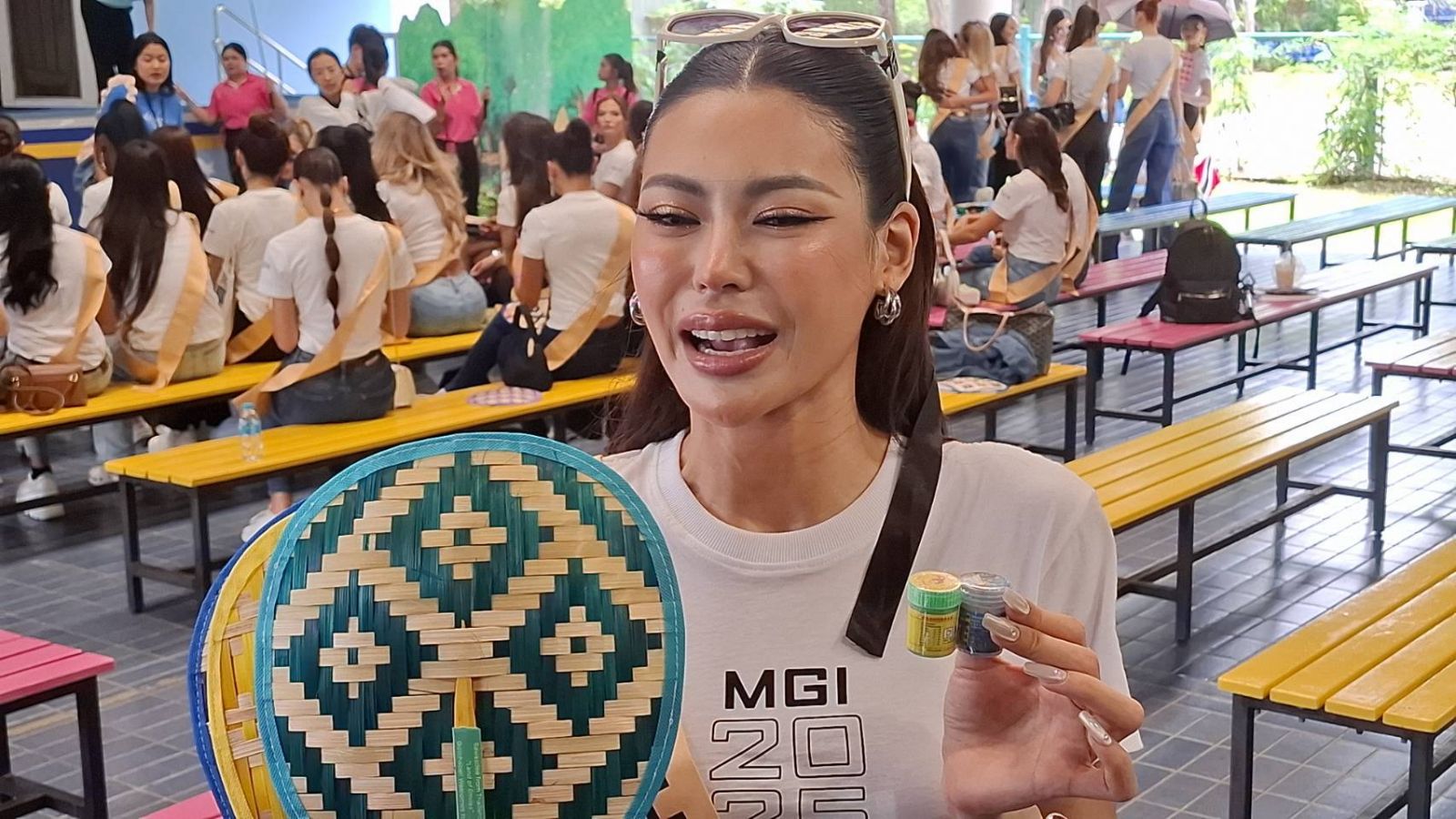 ทางด้าน นางสาวศรัณย์รัชต์ เผือกพิพัฒน์ หรือ "กชเบล " มิสแกรนด์ไทยแลนด์ 2025 (Miss Grand Thailand 2025) กล่าวว่า วันนี้ตนเองในฐานะตัวแทนคนไทยที่เราได้เป็นเจ้าภาพในการประกวด Miss Grand International 2025 และตอนนี้เราอยู่กันที่ Dream World ซึ่งเป็น Activity แรกของเรา ที่มาออกนอกสถานที่กับเพื่อนๆรอบโลก ที่มาจาก from all around the world โดยตนเองในฐานะตัวแทนคนไทยเราก็รู้สึกเป็นเกียรติอย่างยิ่งที่ได้ต้อนรับในฐานะเจ้าภาพกับความยิ่งใหญ่ของเวที Miss Grand ที่เราทุกคนรู้จัก และวันนี้ถือว่าเป็น Soft Power อีกหนึ่ง เพราะว่า Miss Grand จะมี พัด แล้วก็ยาดมมาแจกกับเพื่อนๆ อีกด้วย ซึ่งเพื่อนๆ ก็ชอบมากๆ เพราะว่าวันนี้ Activity ของเราเยอะมากๆ เพราะฉนั้นถ้าเพื่อนๆ รู้สึกว่าร้อน หรือว่าจะเป็นลม หลังจากเล่นเสร็จก็หยิบขึ้นมาพัดแล้วก็ดมได้เลย ซึ่งก็เป็นความน่ารักที่ในตัวแทนคนไทยก็เป็นของเล็กๆ ที่มอบให้เพื่อนๆ โดยตนก็สนับสนุนให้คนไทยมาเที่ยวกันเยอะๆ ที่ Dream World เที่ยวได้ทุกวัย แล้วก็ยังทำให้เขาเรียกว่าเติมเต็มความอบอุ่นแล้วก็ความสนุกความสุขรอยยิ้มให้กับครอบครัวอีกด้วย