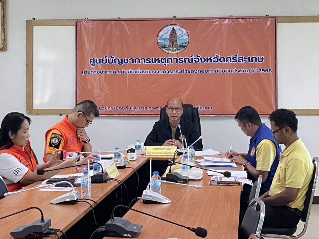 เมื่อวันที่ 1 ต.ค. 2568 ที่ห้องประชุมสำนักงานป้องกันและบรรเทาสาธารณภัย (ปภ.) จังหวัดศรีสะเกษ โรงแรมนครลำดวนเพลส มหาวิทยาลัยราชภัฏศรีสะเกษ อ.เมือง จ.ศรีสะเกษ นายอนุพงศ์ สุขสมนิตย์ ผวจ.ศรีสะเกษ มอบหมายให้ นายสุริยา บุตรจินดา รอง ผวจ.ศรีสะเกษ เข้าร่วมการประชุมติดตามความคืบหน้าการให้ความช่วยเหลือผู้ประสบภัยกรณีภัยอันเนื่องมาจากการกระทำของกองกำลังจากนอกประเทศปี 2568 ตามมติคณะรัฐมนตรีเมื่อวันที่ 26 สิงหาคม 2568 ซึ่งมี นายเชษฐา โมสิกรัตน์ อธิบดีกรมป้องกันและบรรเทาสาธารณภัย เป็นประธานการประชุม ที่ห้องประชุมกองบัญชาการป้องกันและบรรเทาสาธารณภัยแห่งชาติ อาคาร 3 ชั้น 5 กรมป้องกันและบรรเทาสาธารณภัย และผ่านระบบวีดิทัศน์ทางไกล (Zoom Cloud Meetings)